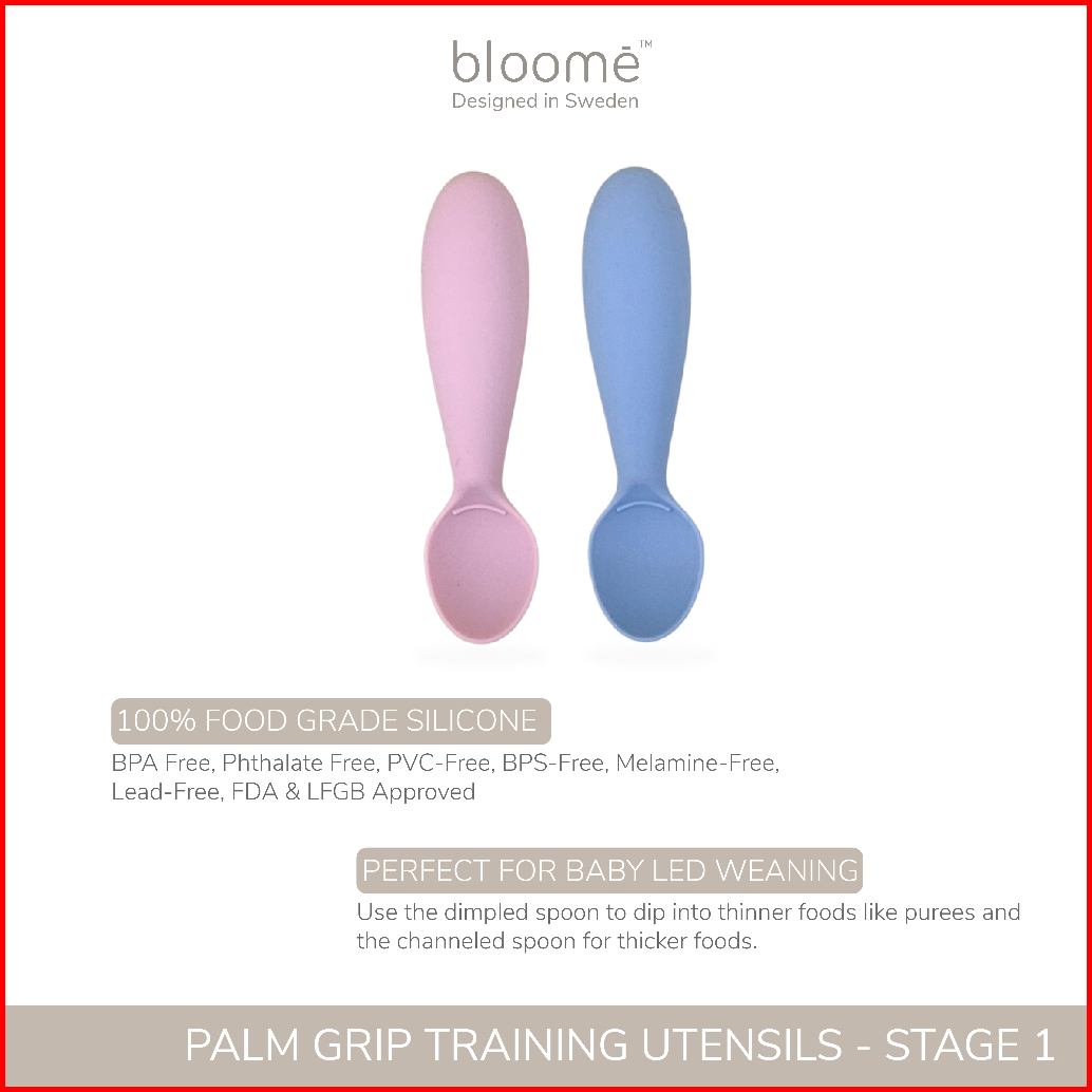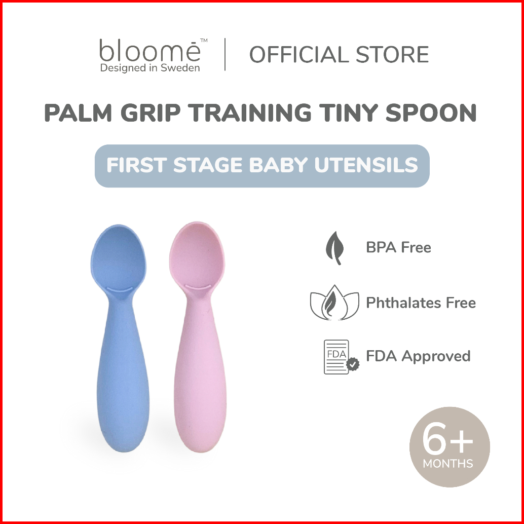Bloome Palm Grip Training Tiny Spoon - Stage 1 Silicone Dipping Spoon For Baby Sendok Silikon Dips Puree Mpasi Bayi Blw