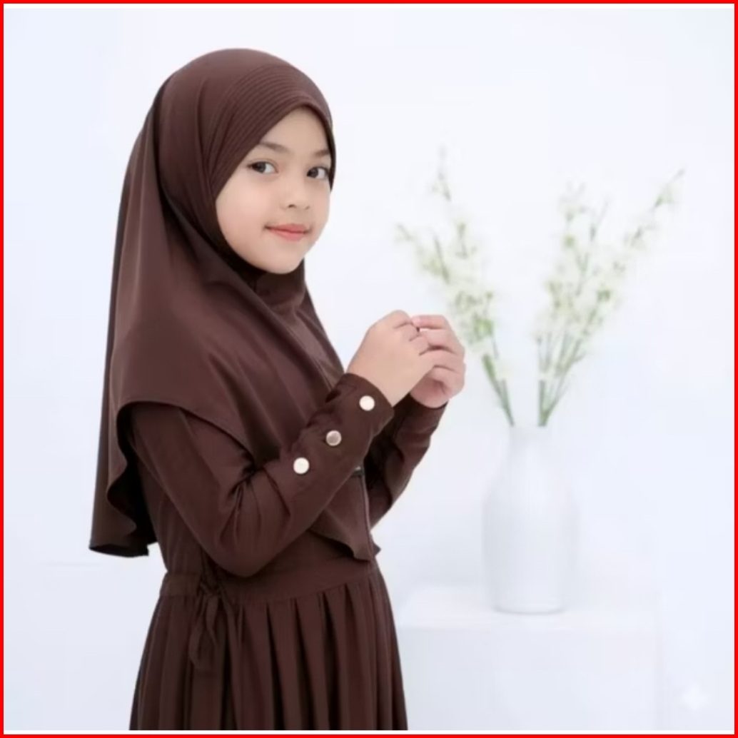 Gamis Abaya Anak Inara Serut Pinggang Usia 0-9 Tahun Bahan Jersey Lembut Dan Adem Free Hijab Muslim Panjang Nyaman