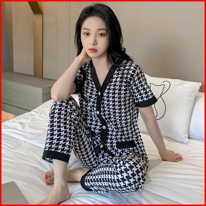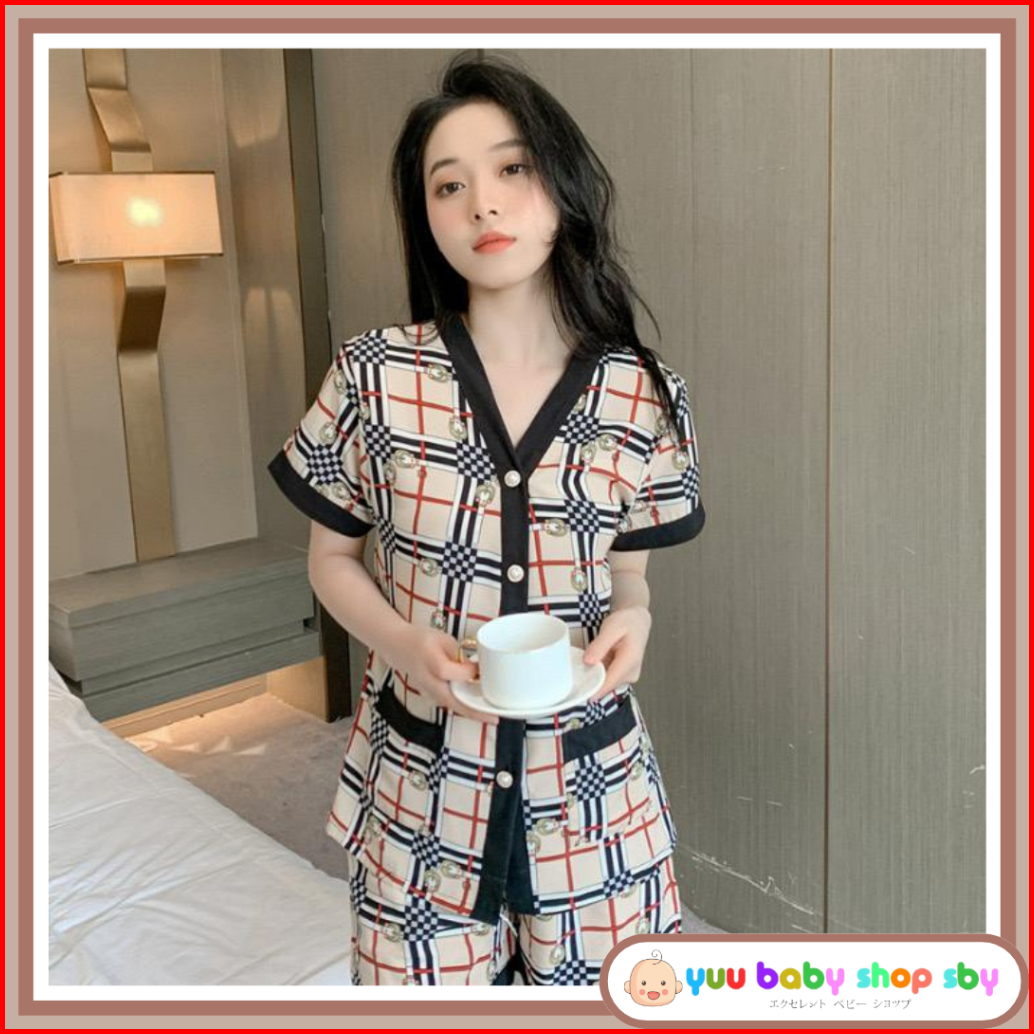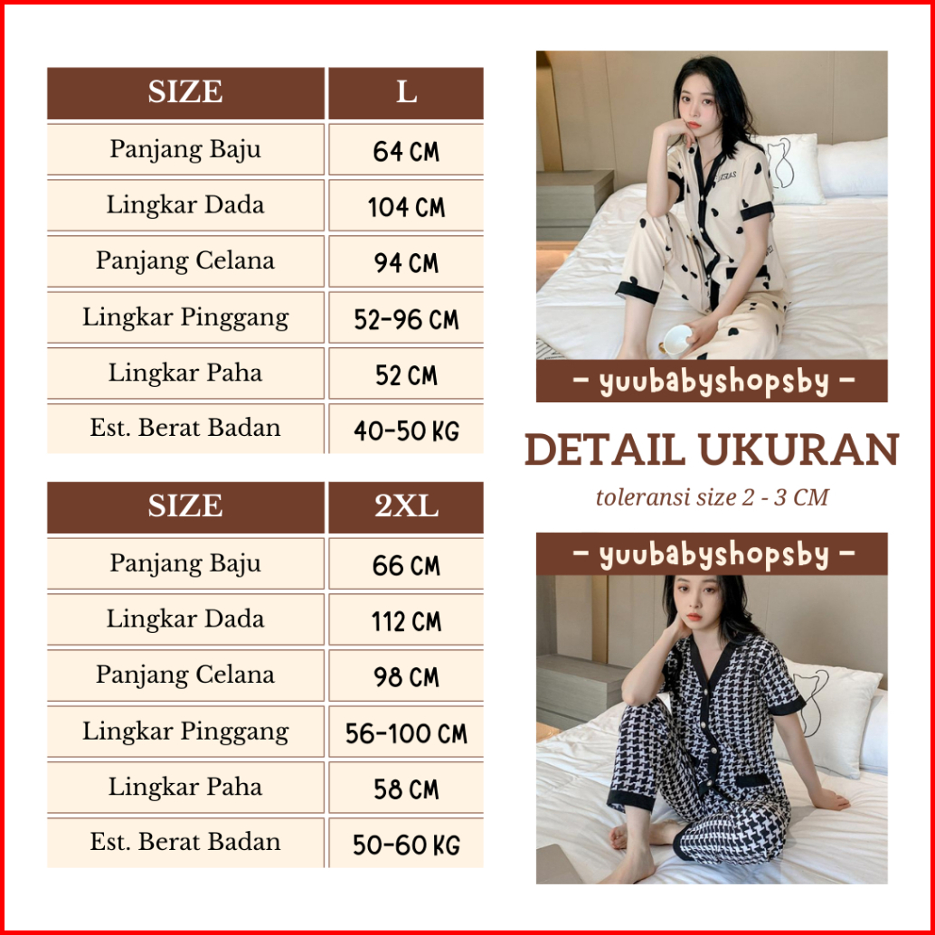 Ybss Piyama Wanita Dewasa Set Baju Tidur Pakaian Setelan Lengan Pendek Celana Panjang Bahan Satin Milksilk Lembut High Q