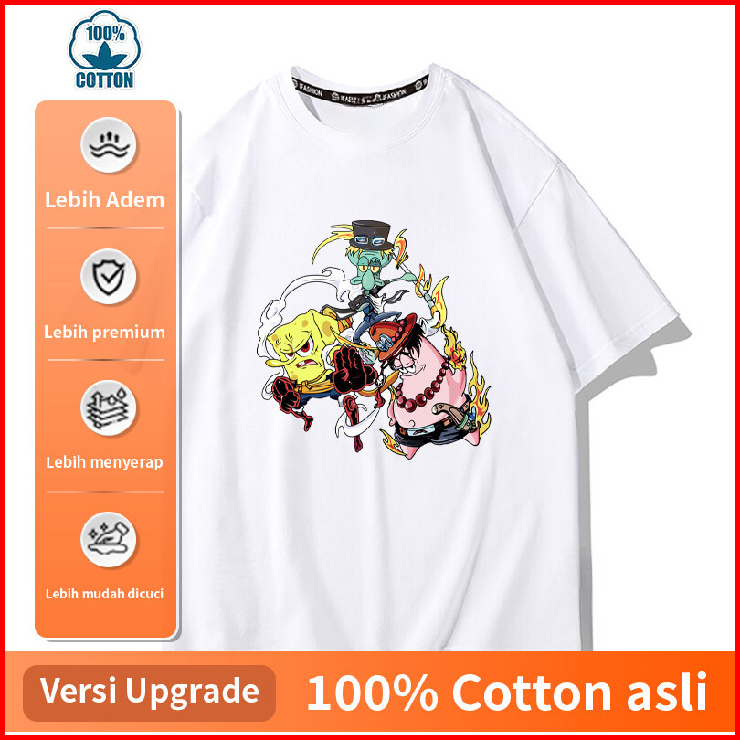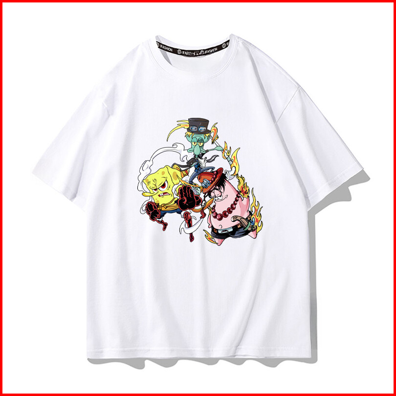 Pakaian Kolaborasi One Piece Dan Spongebob Kaos Cowok Cewek Distro Vintage Retro