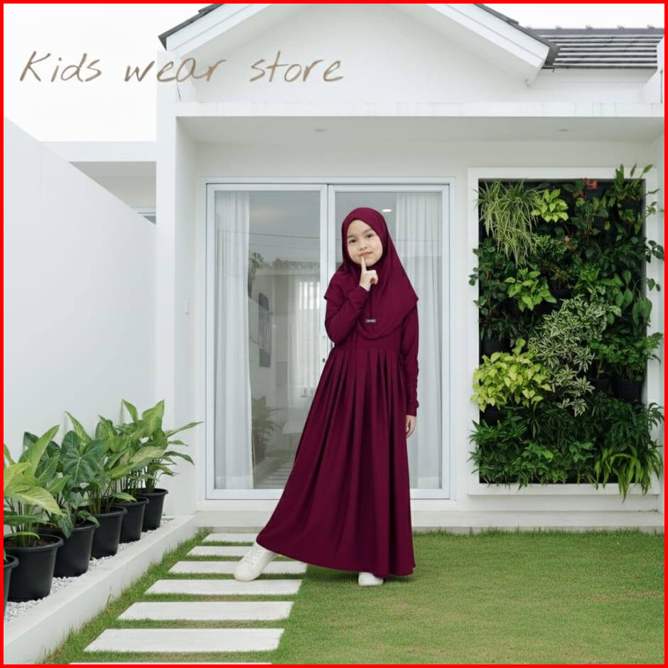 Gamis Abaya Anak Serut Tali Pinggang Usia 1-8 Tahun Bahan Jersey Lembut Dan Adem Muslim Anak