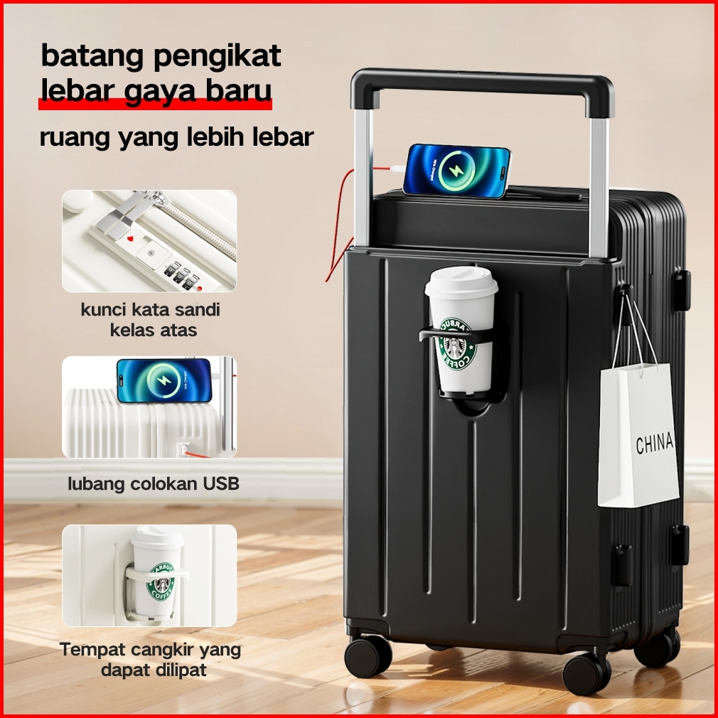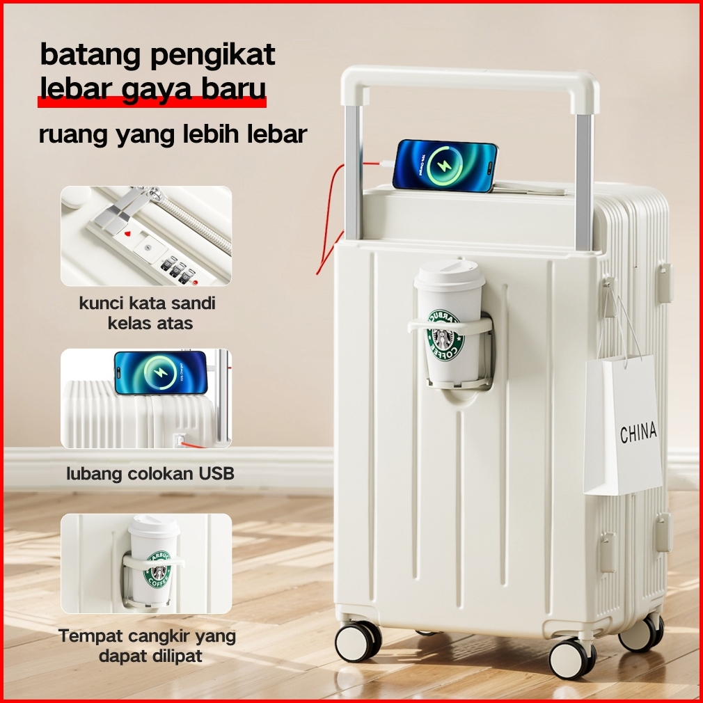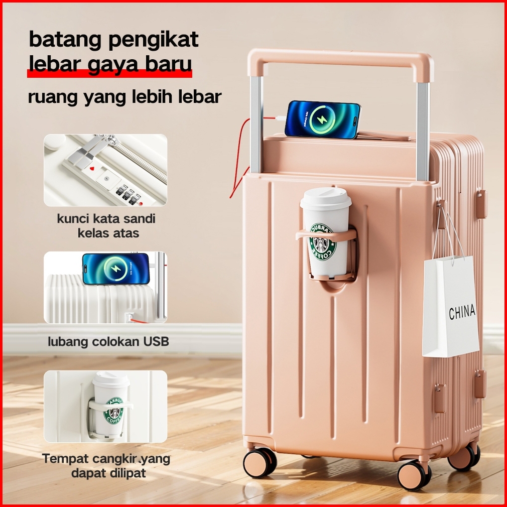 New Arrival Koper Kabin 20inch Bepergian Charger Laptop Murid Impor Modis Tinggi Kokoh Koper Roda Senyap A306
