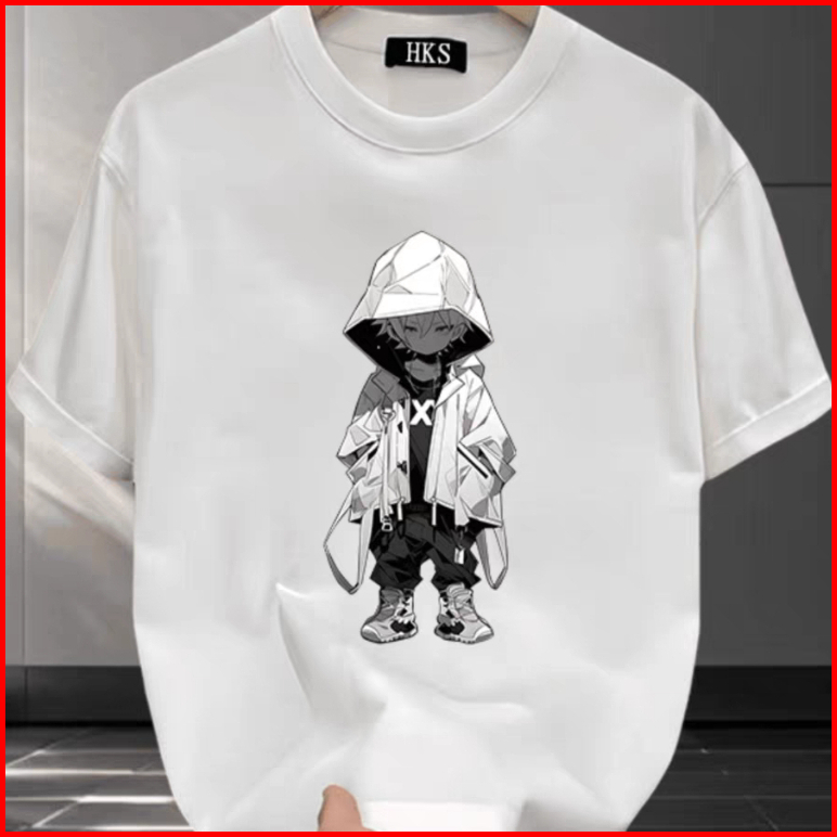 Kaos Pendek Pria Americana Streetwear Musim Panas - Heavyweight Katun 100 Oversized Leher Bundar Motif Print Keren Gaya
