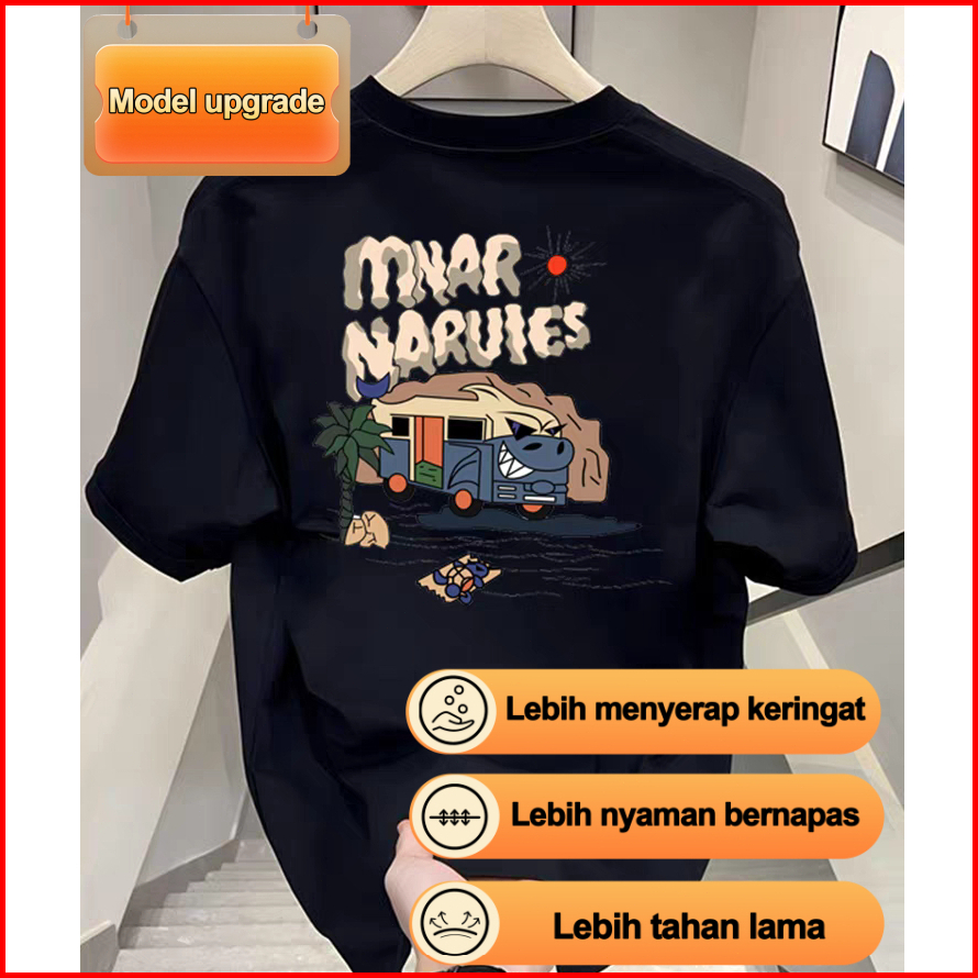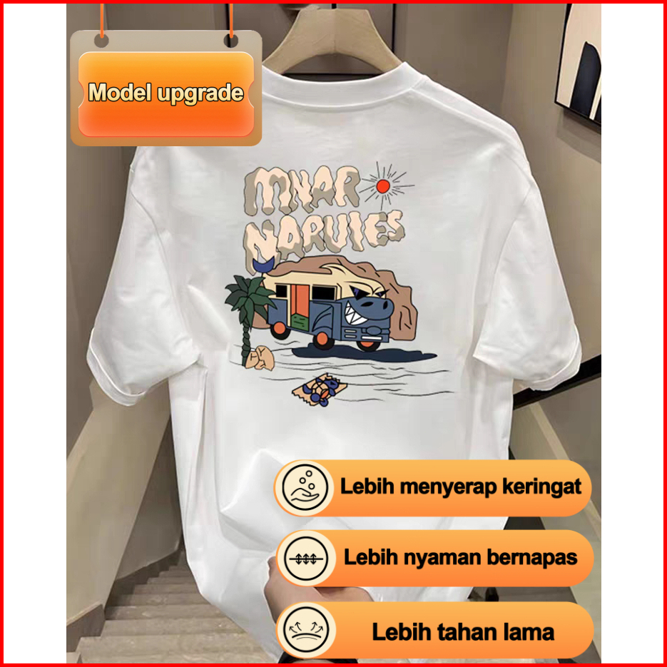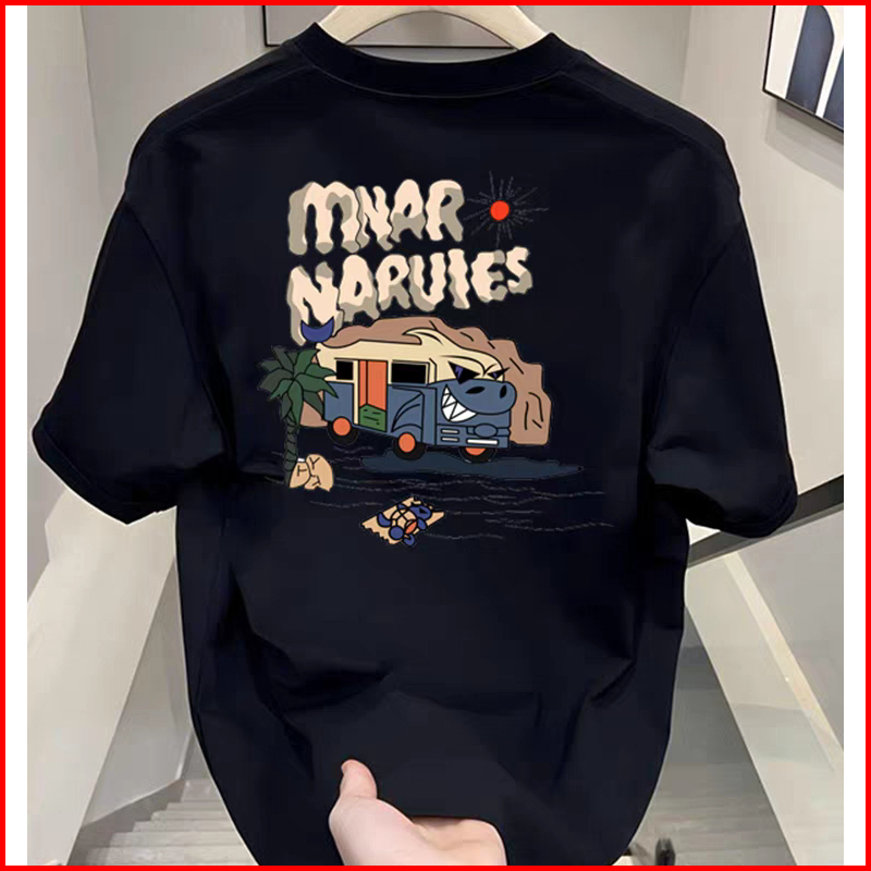 Kaos T-shirt Katun Dengan Motif Unik Musim Panas Leher Bulat Lengan Pendek Versatile Untuk Pria