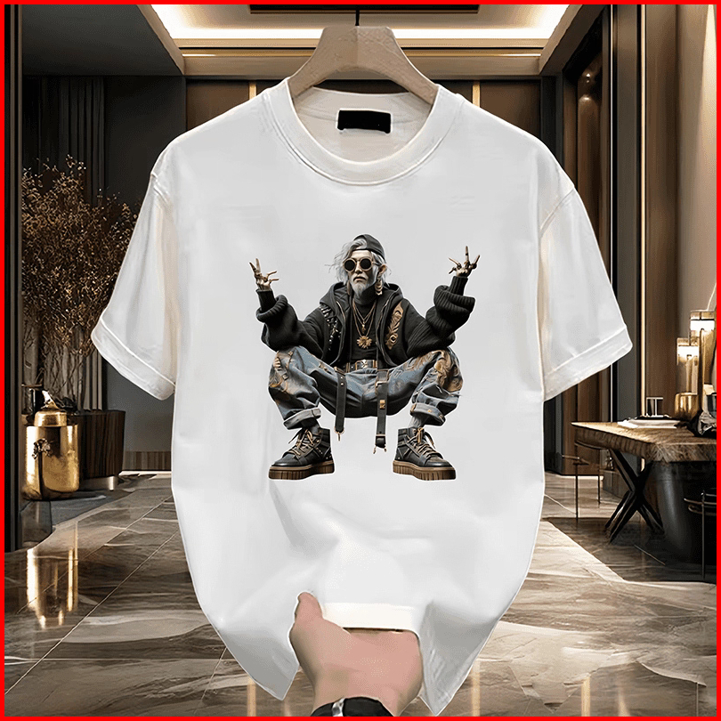 Kaos Pria Lengan Pendek Fashion Dengan Motif Cetak - 100 Katun Kerah Bulat Baju Atas Pria Musim Panas