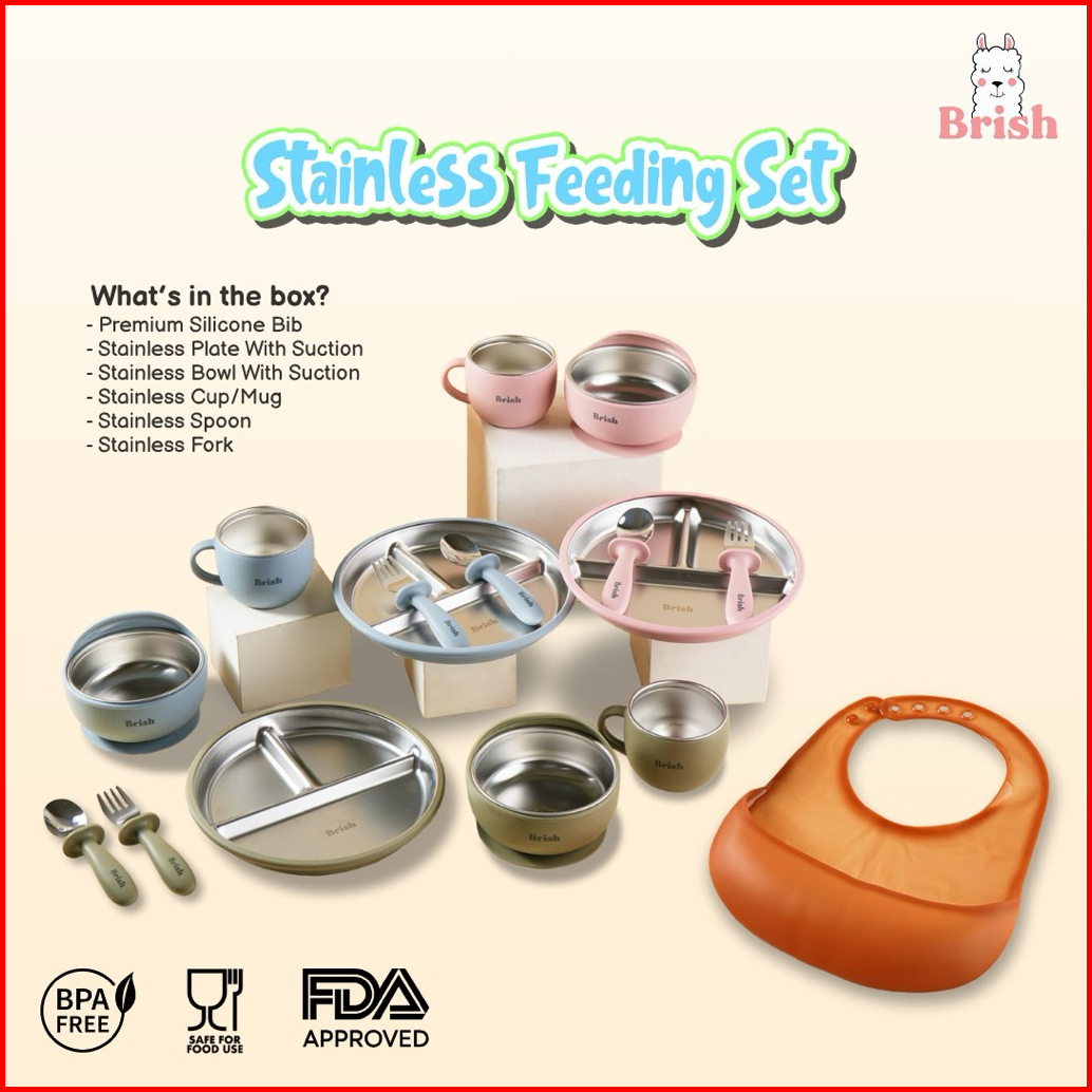 6 In 1 Stainless Feeding Set - Brish - Sus 304 Perlengkapan Mpasi Anak Bpa Free Include Packaging Box