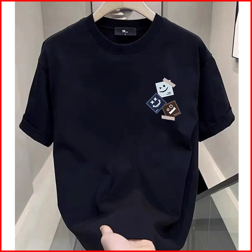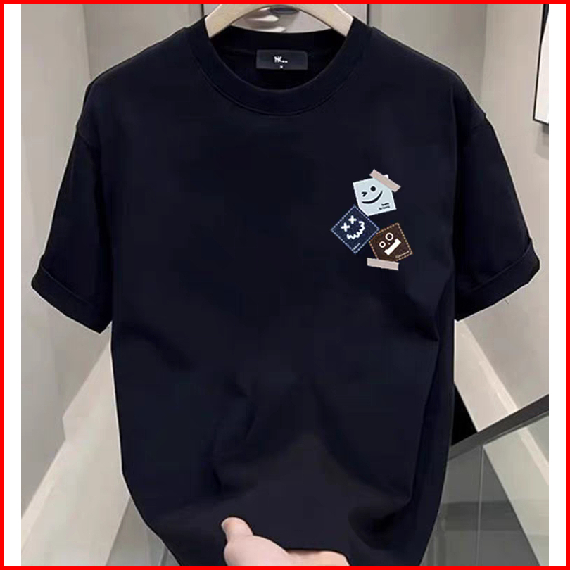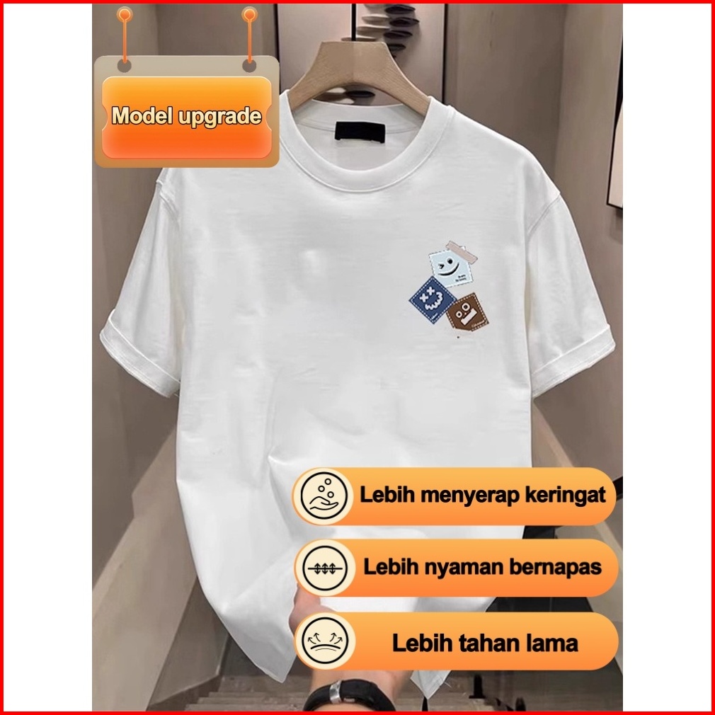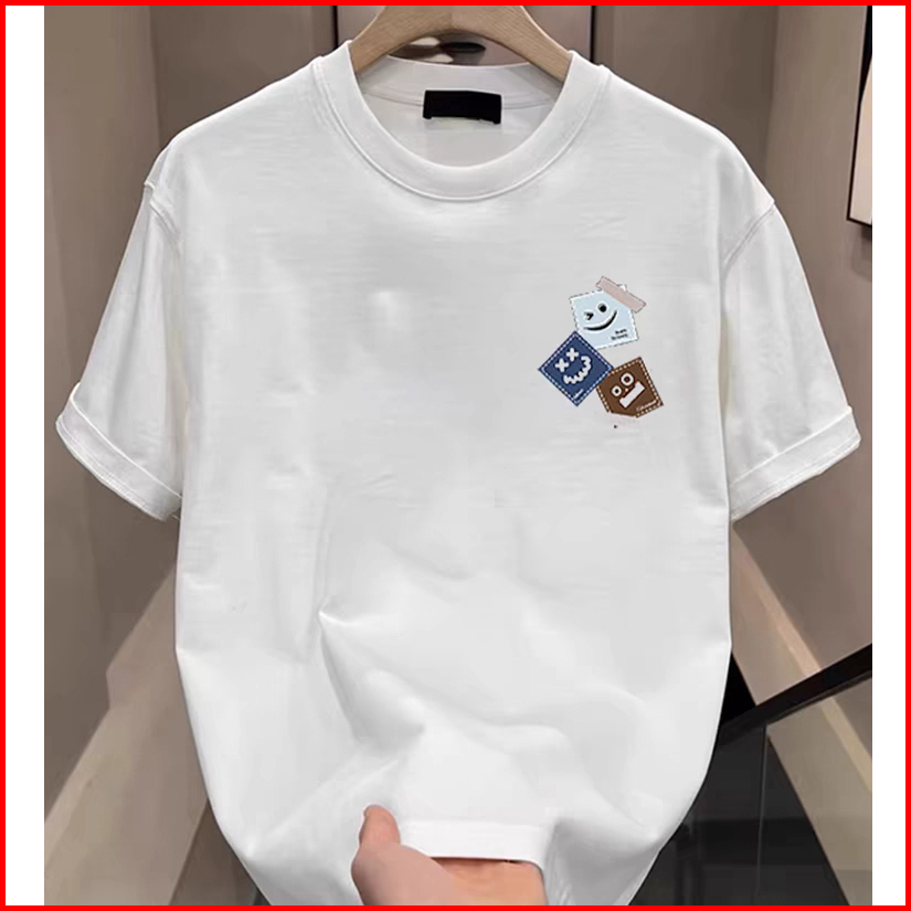 Kaos T-shirt Katun Dengan Motif Sederhana Pria 2025 Leher Bulat Santai Lengan Pendek Musim Panas