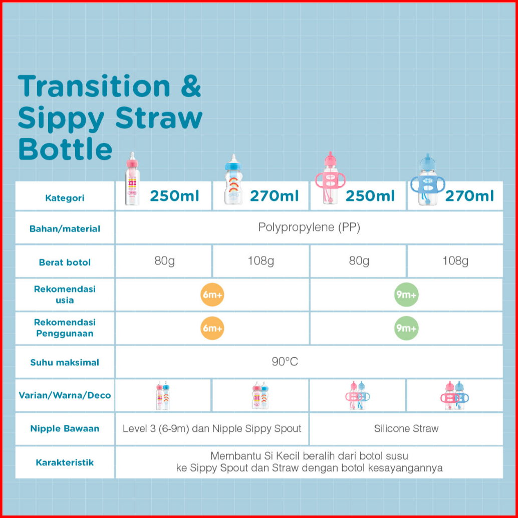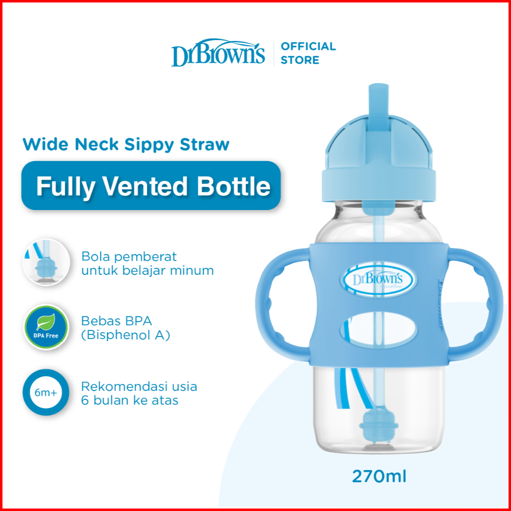 Dr. Brown S 8 Oz 9 Oz Pp Sippy Straw Bottle W Silicone Handles Pink Blue - Botol Minum Anak