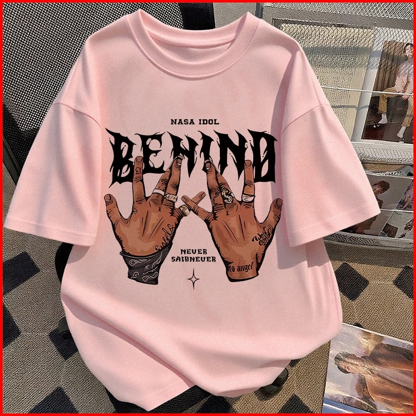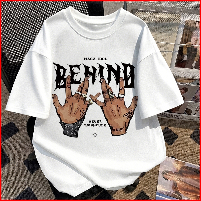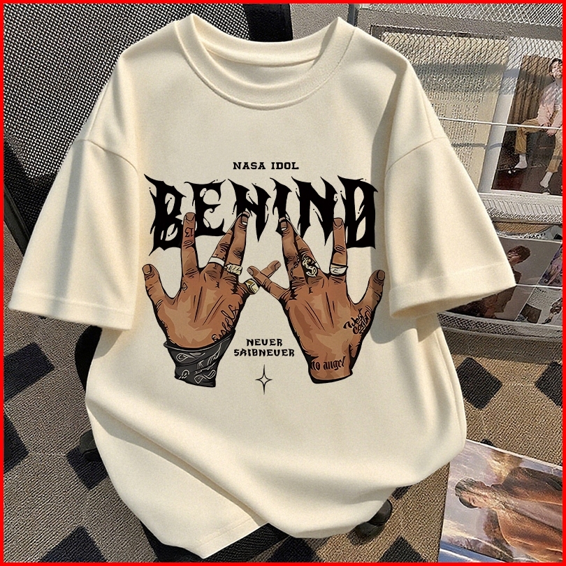 Naomifashion - T Shirt Oversize Pria Hip Hop Style Baju Korean Style Lengan Pendek Crewneck Kaos Vintage Streetwear Puti