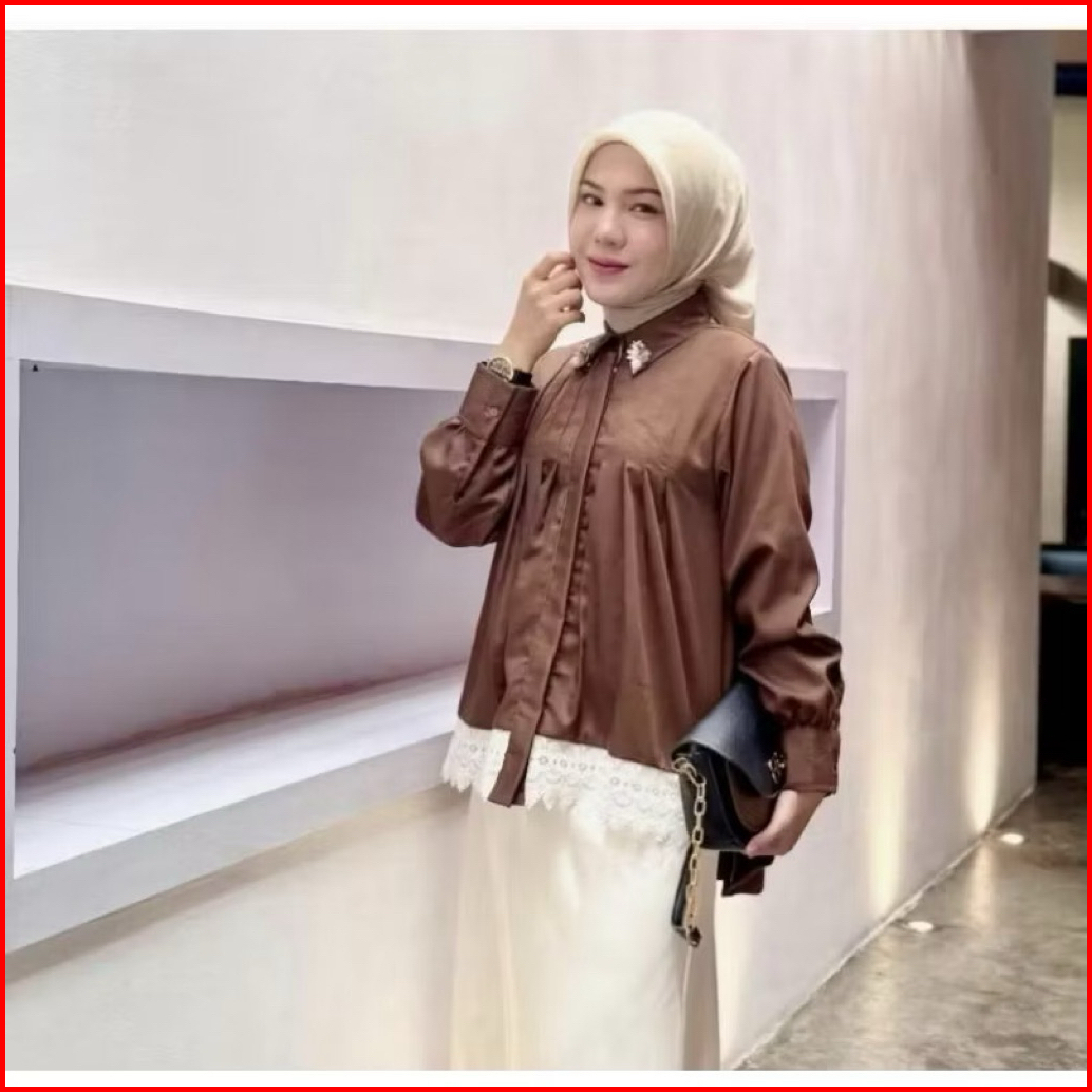 Jema Basic Blouse - Kemeja Basic Renda - Atasan Blouse Wanita Basic