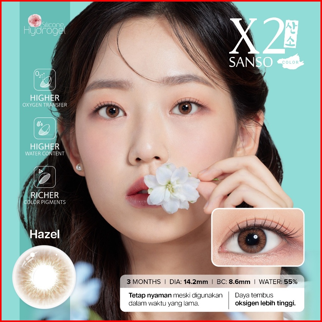 X2 Sanso Softlens - Hazel Soflens Premium Korea Soflens Minus Diameter 14.2mm