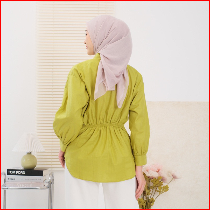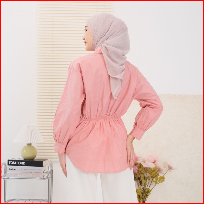 Luna Top Long Slevee Atasan Wanita Katun Poplin Kerut Belakang