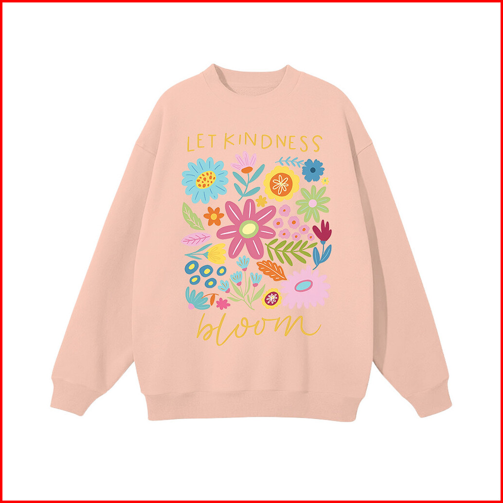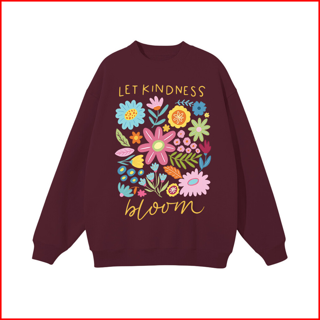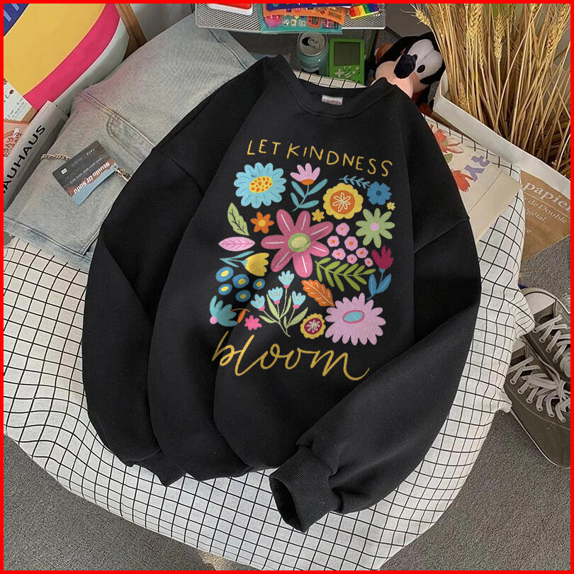Lucky88k Sweater Oversized Street Style Korean Style Gambar Flower Bloom Bahan Cotton
