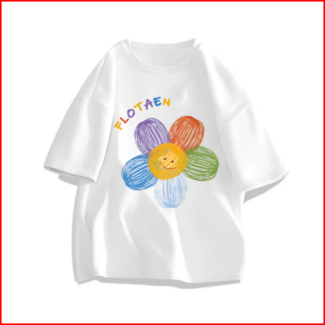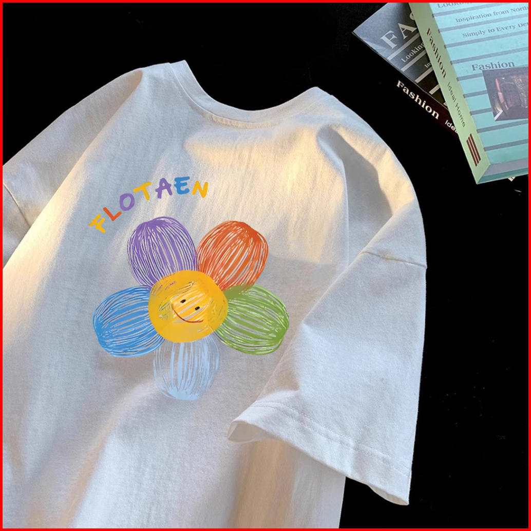 Lucky88k Kaos Oversize Lengan Pendek Bunga Flotaen Warna Warni Trendy Korean Style 100 Cotton