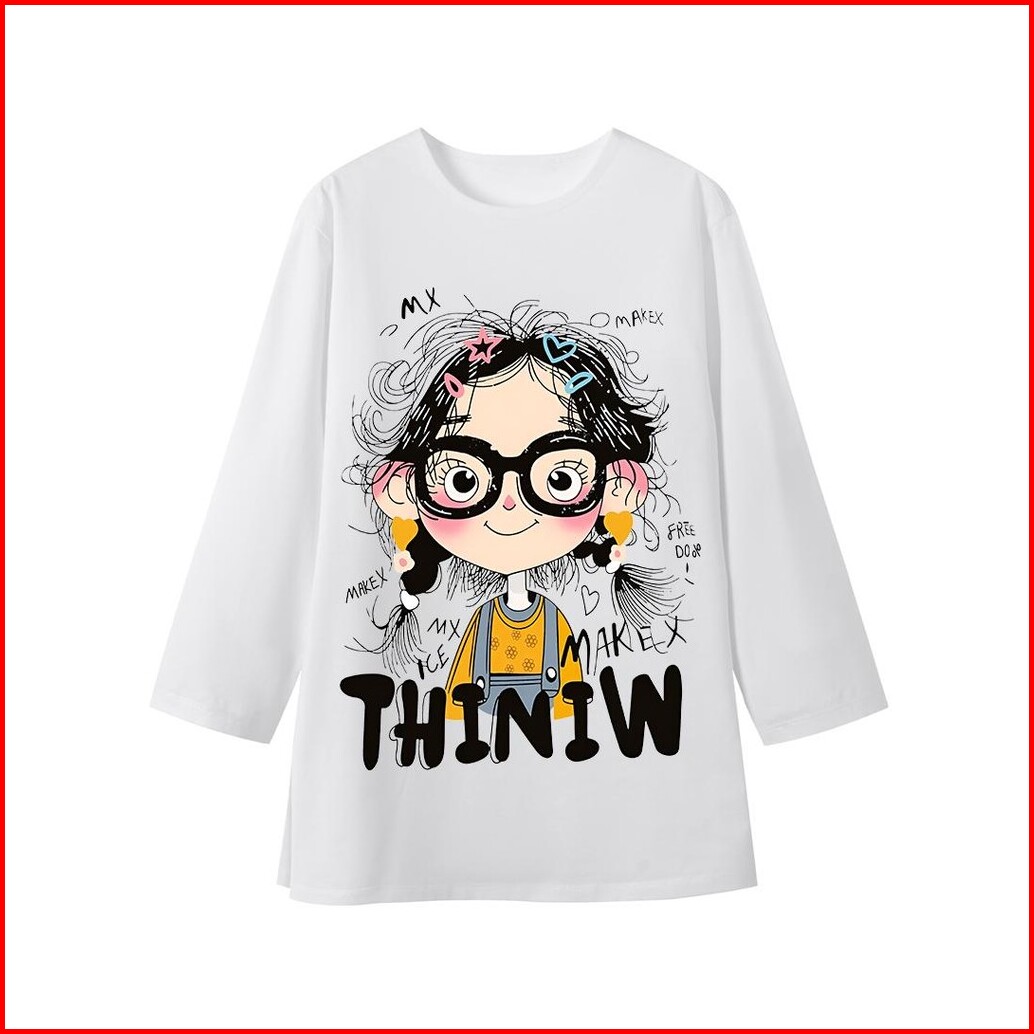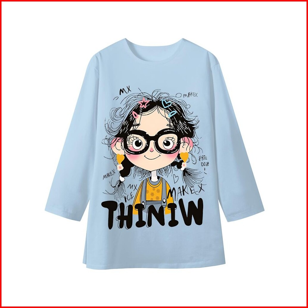 Tshirt Kaos Oversize Lengan 7 8 Kaos Wanita Gambar Thiniw Tebal Dan Nyaman Bahan 100 Cotton