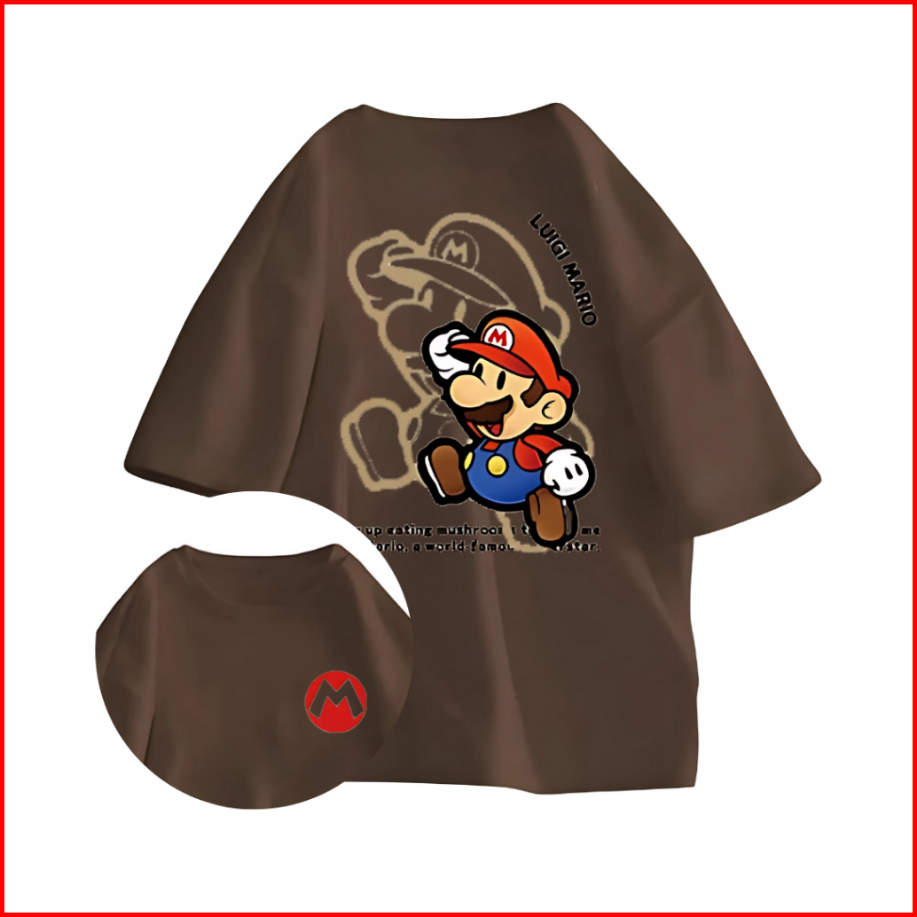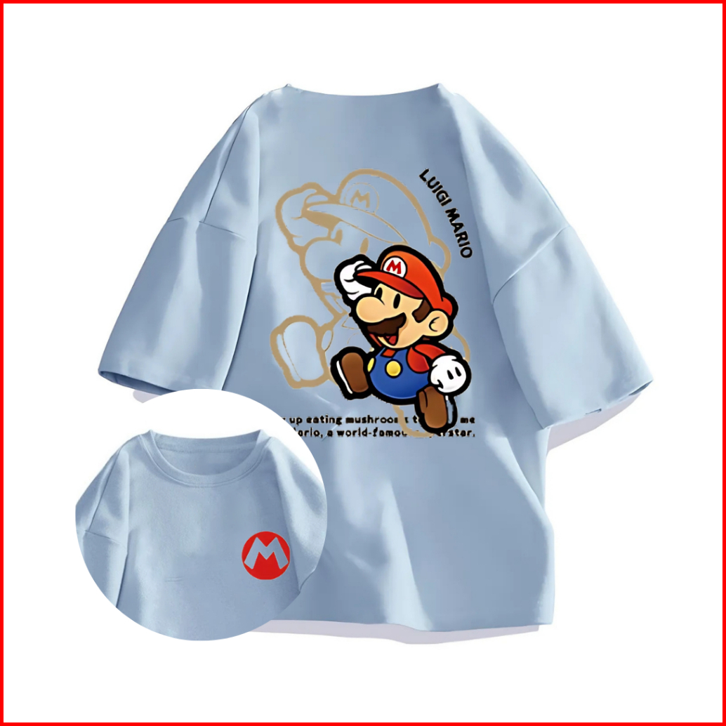 Lucky88k Atasan Pria Lengan Pendek Oversize Korean Style Pola Super Mario 100 Cotton