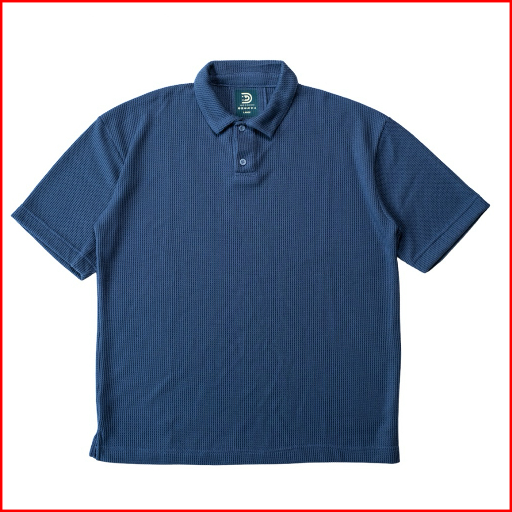 Dupares - Kemeja Polo Shirt Waffle Knit Pria Lengan Pendek Smart Casual Old Money Warna Blue Stone