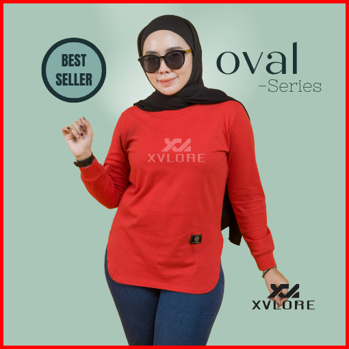 Xvlore Fst Kaos Cewek Wanita Atasan Lengan Panjang Bawahan Oval Polos Merah Cabei Real Pict Nyaman Katun Combed Premium