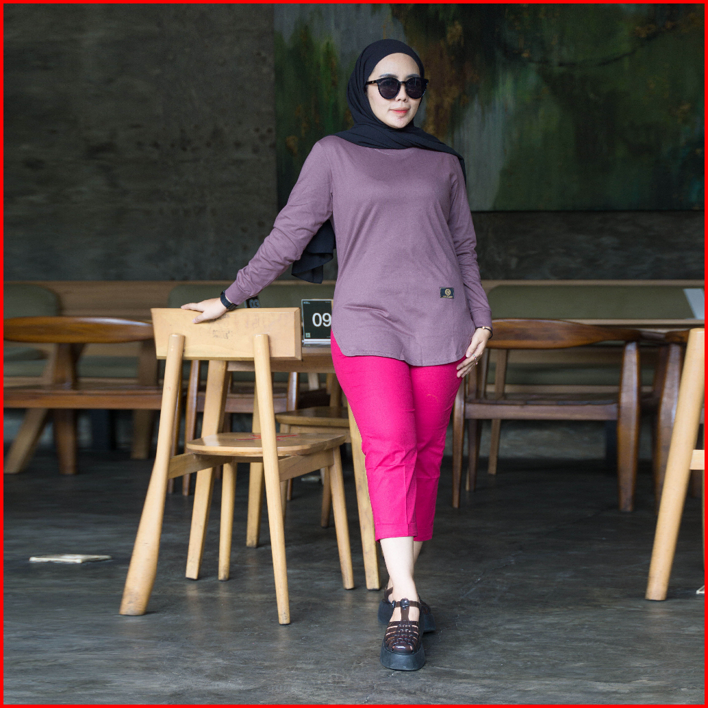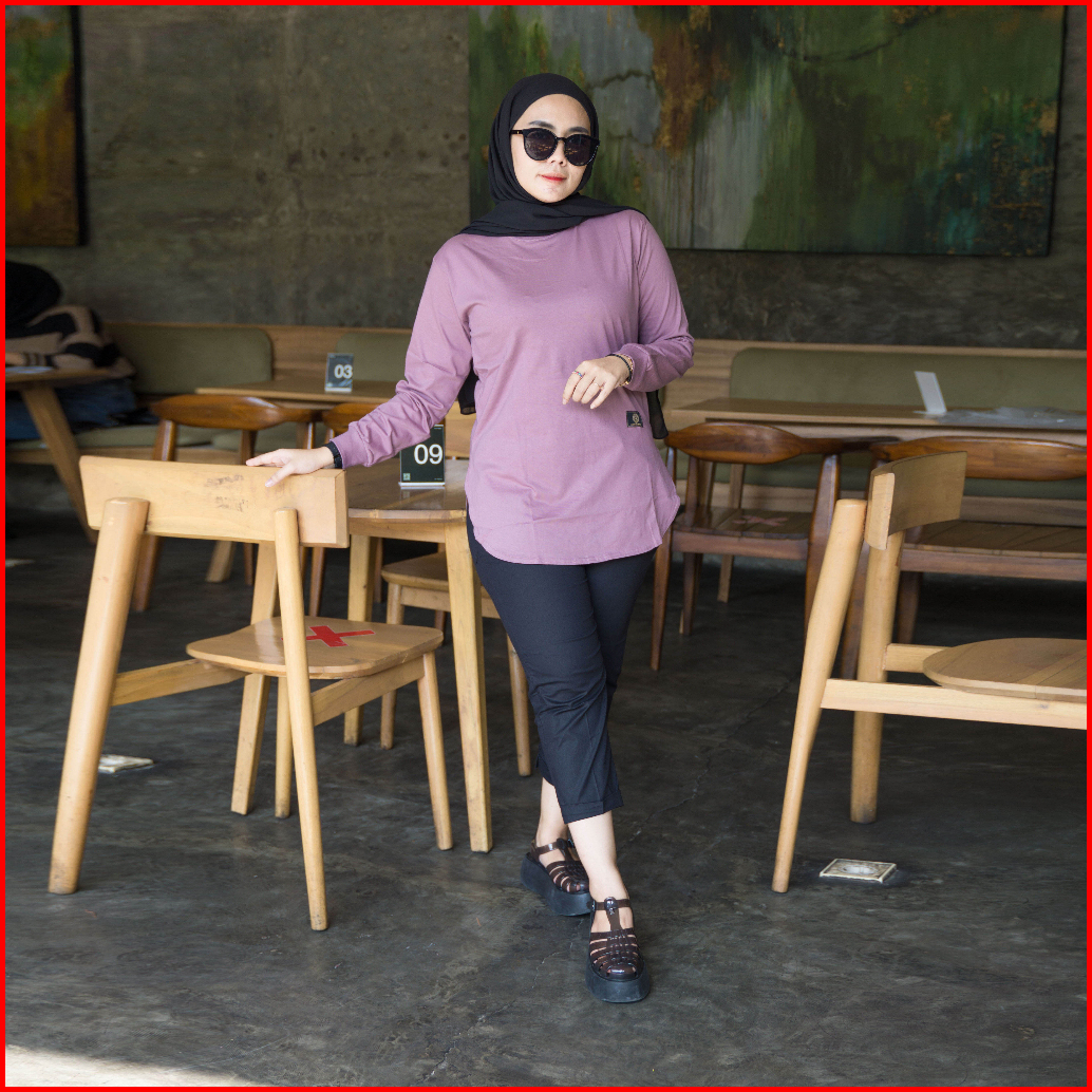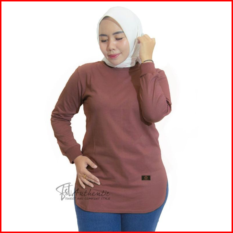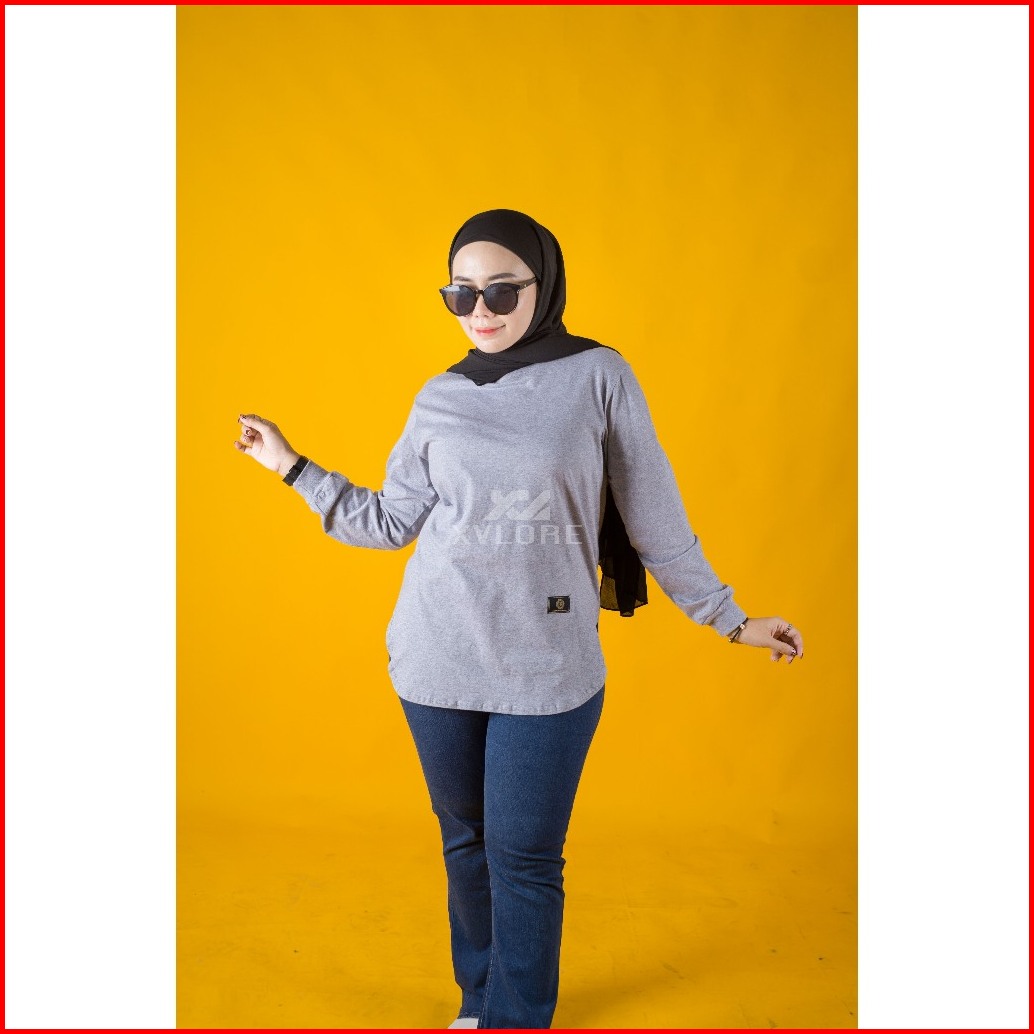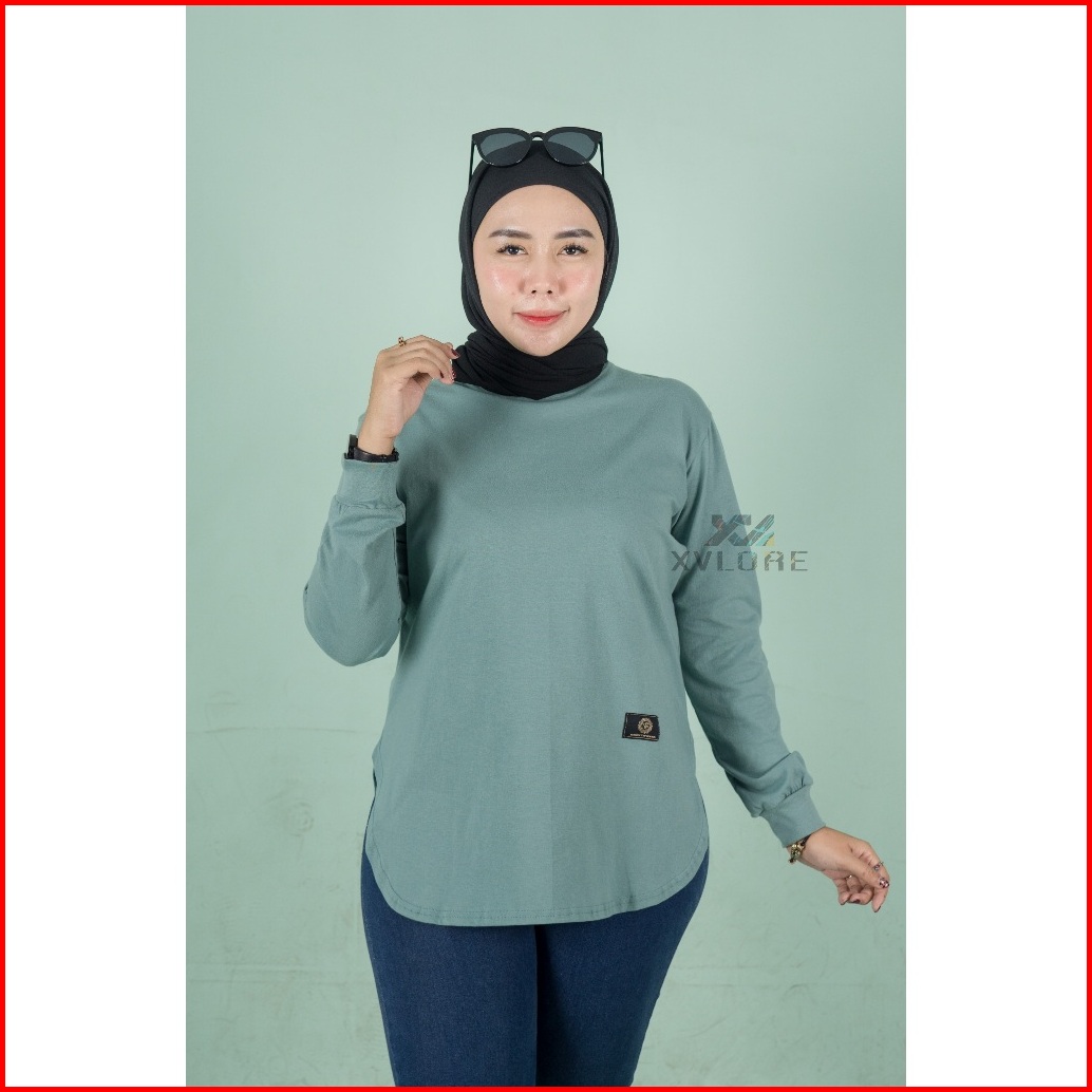 Xvlore Fst Kaos Cewek Wanita Atasan Lengan Panjang Bawahan Oval Polos Real Pict Nyaman Katun Combed Premium A.1
