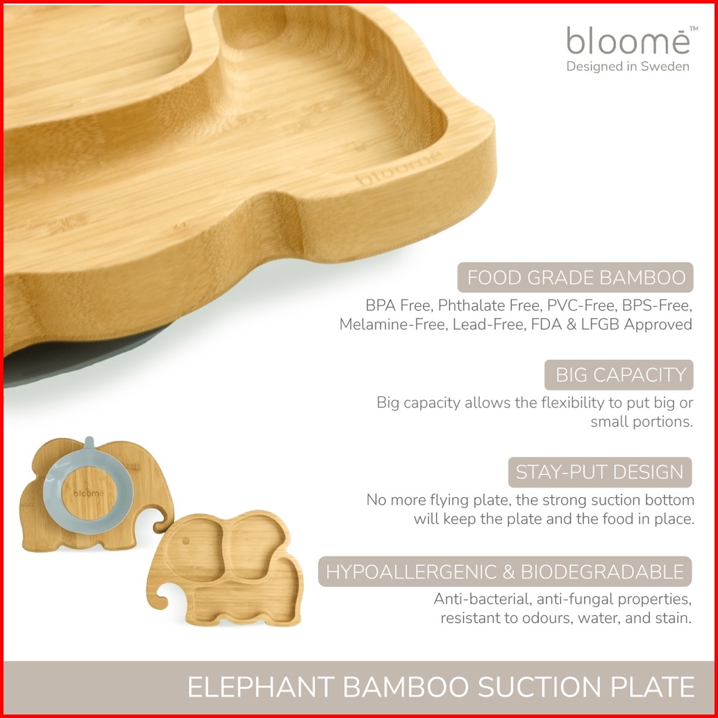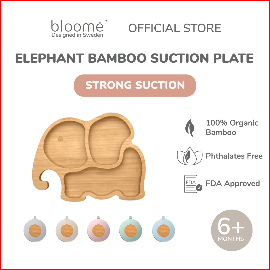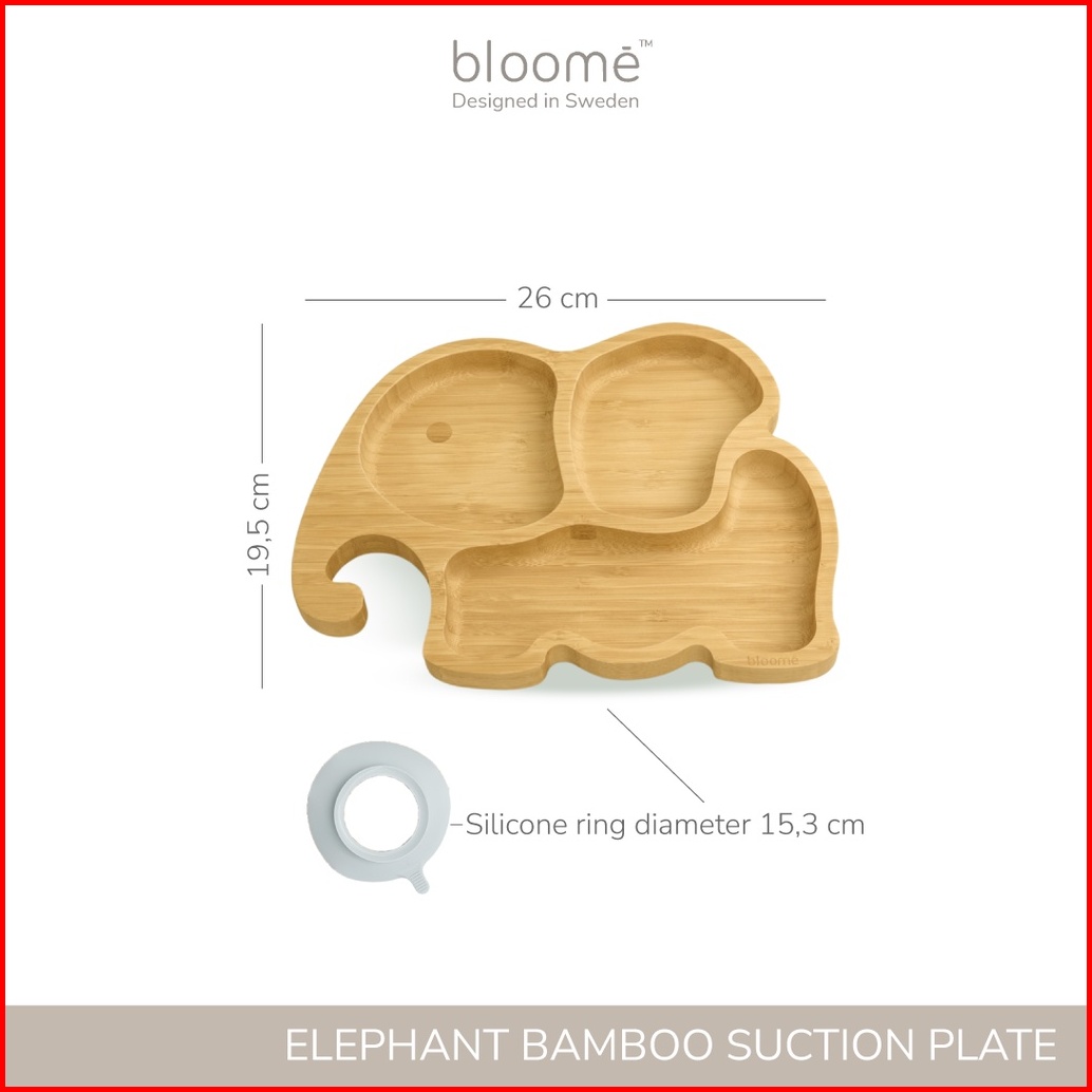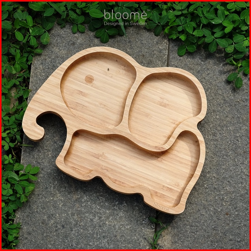 Bloome Elephant Bamboo Suction Plate For Baby Toddler And Kids Piring Makan Gajah Bambu Bayi Premium