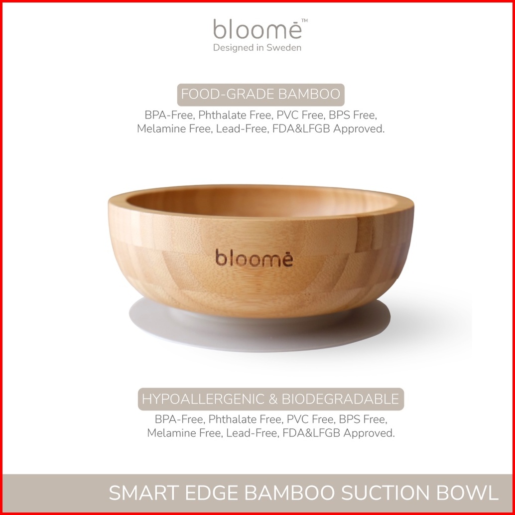Bloome Smart Edge Bamboo Suction Bowl For Baby Toddler And Kids Mangkok Makan Bambu Bayi Premium