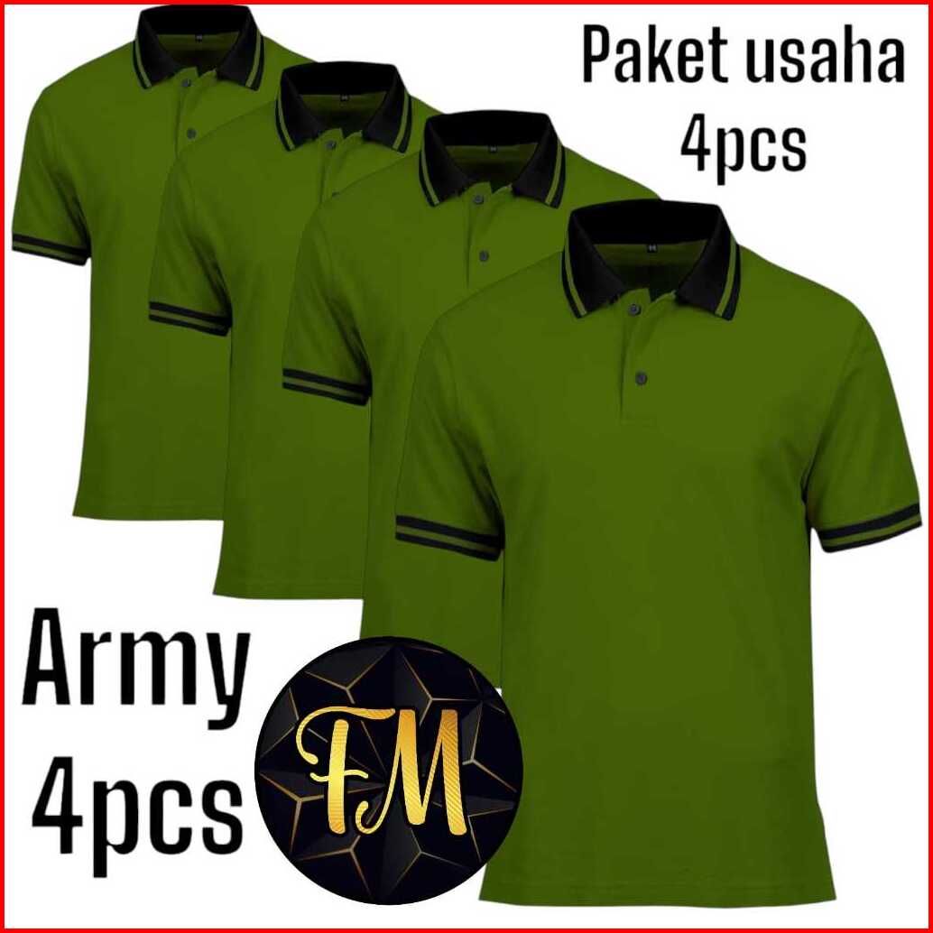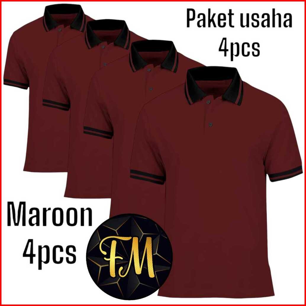 Findmine - Paket 4pcs Kaos Polo Shirt Polos Hitam Putih Kerah Stripe Cowok Wanita
