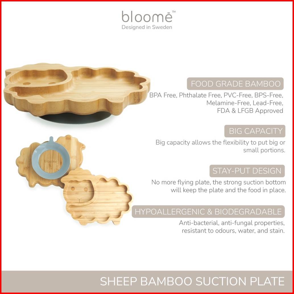 Bloome Sheep Bamboo Suction Plate For Baby Toddler And Kids Piring Makan Domba Bambu Bayi Premium