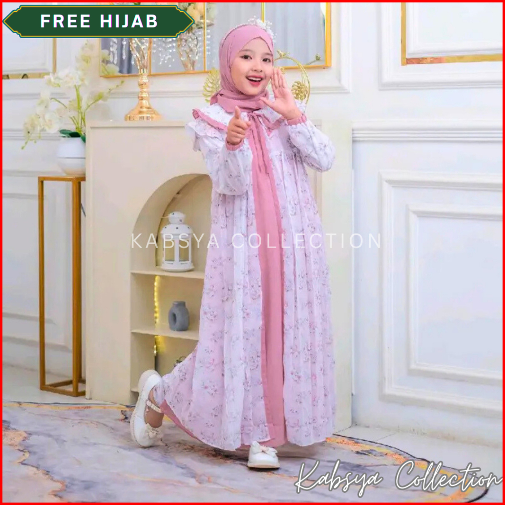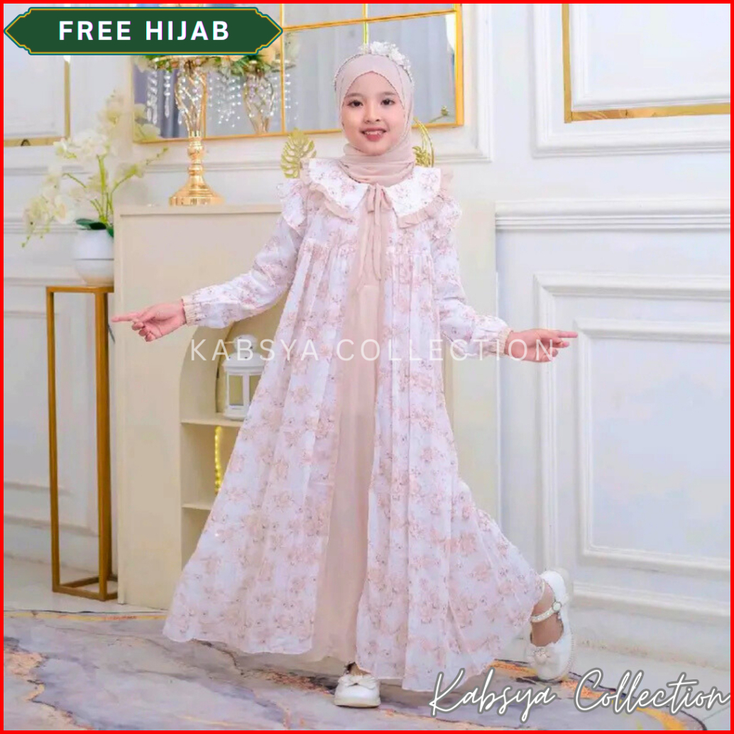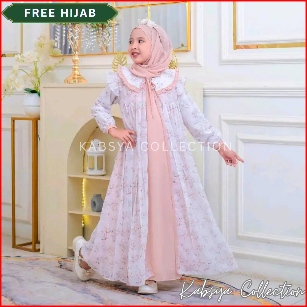 Gamis Anak Madrasah Safia Series Ceruti Baby Doll Free Hijab Kaftan Anak Pakaian Baju Muslim Anak Wella 4