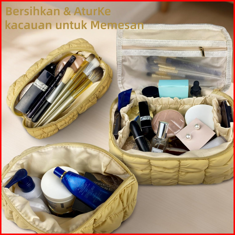 Set Tas Kosmetik Berlapis 3 Bagian Tas Penyimpanan Perlengkapan Mandi Perjalanan Berbulu Tas Makeup Tahan Air Wanita Den