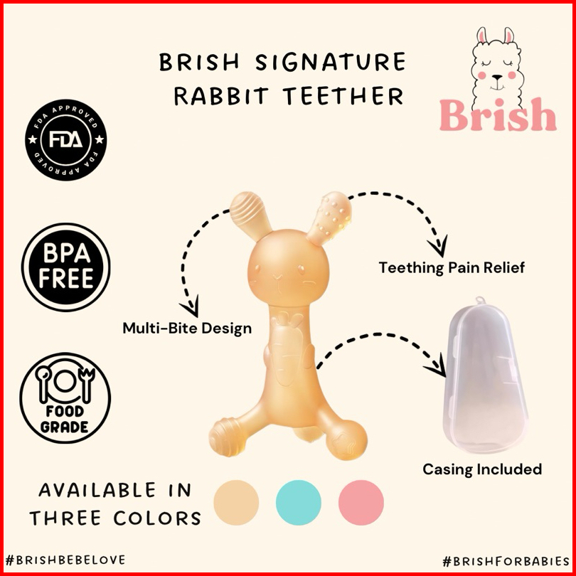 Rabbit Teether - Brish - Gigitan Bayi Silikon Kualitas Tinggi Bpa Free Lentur Dan Fleksibel Bonus Casing