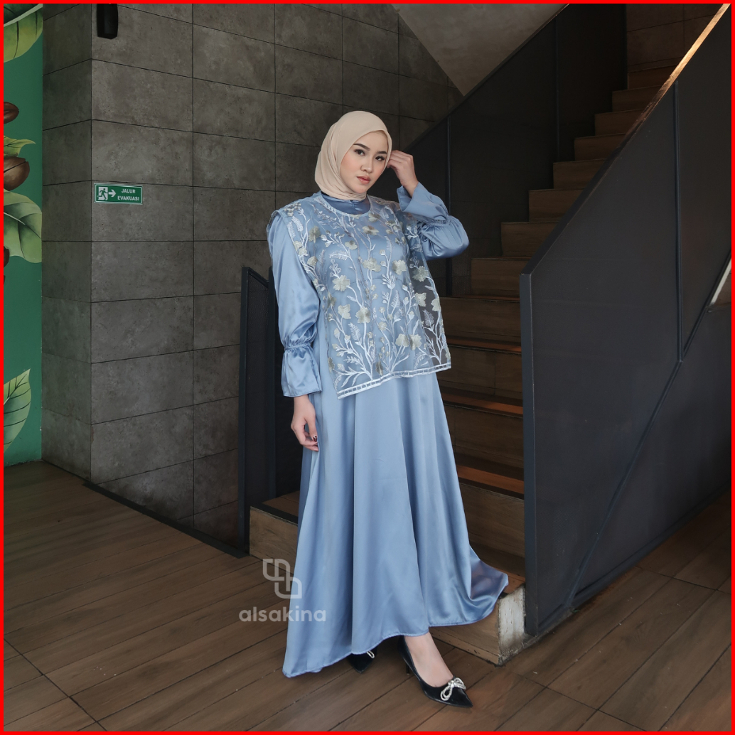 Felisya Dress Brukat Outer Tile Garden - Outer Brukat - Gamis Pesta Mewah Elegan - Dress Kondangan