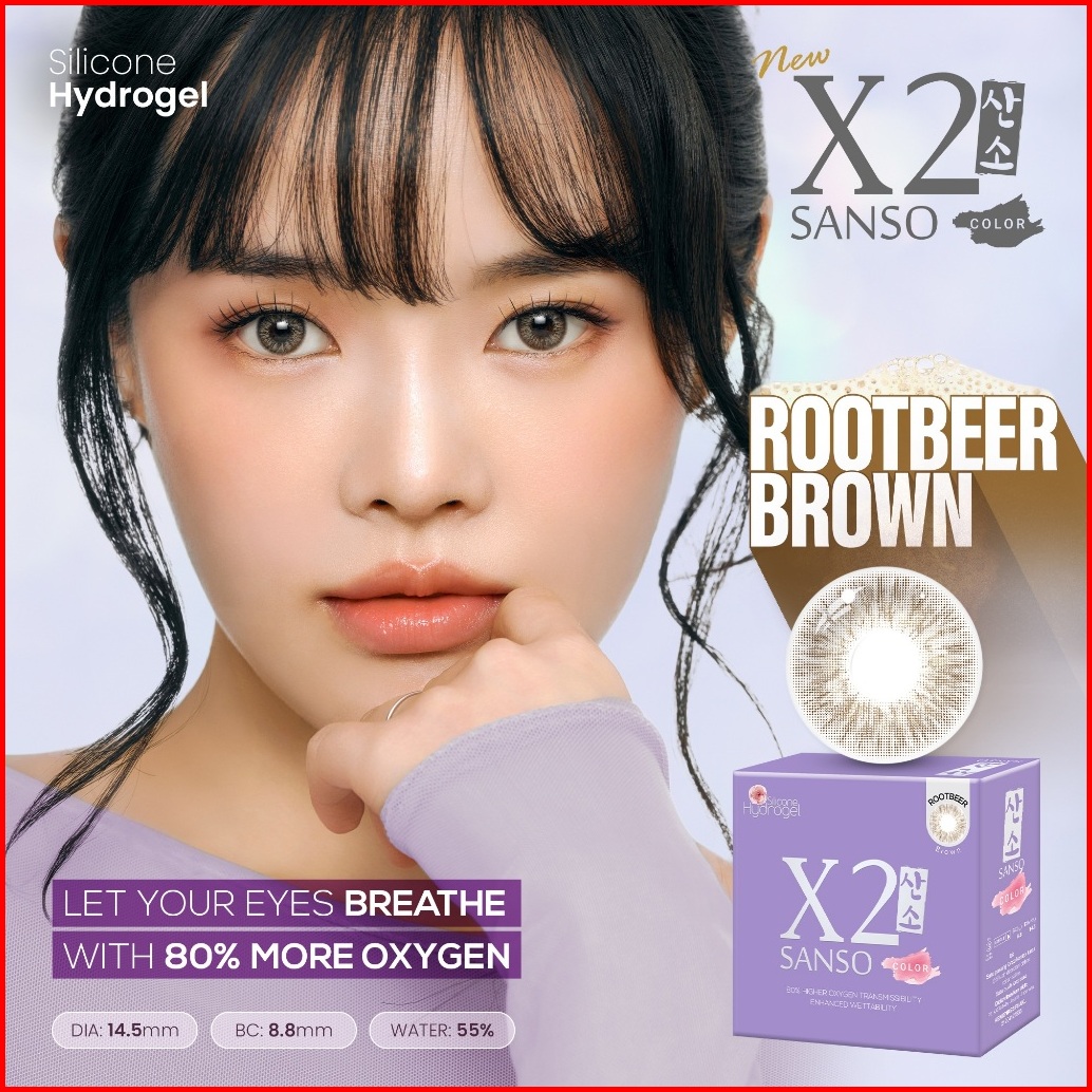 New X2 Sanso Color - Softlens Varian Rootbeer Kontak Lensa Warna Brown Diameter 14.5 Mm