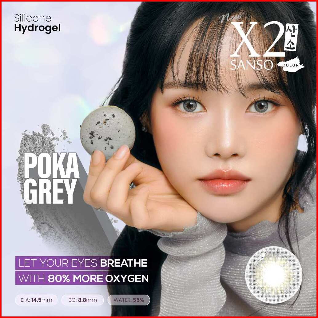 New X2 Sanso Color - Softlens Varian Poka Kontak Lensa Warna Grey Diameter 14.5 Mm