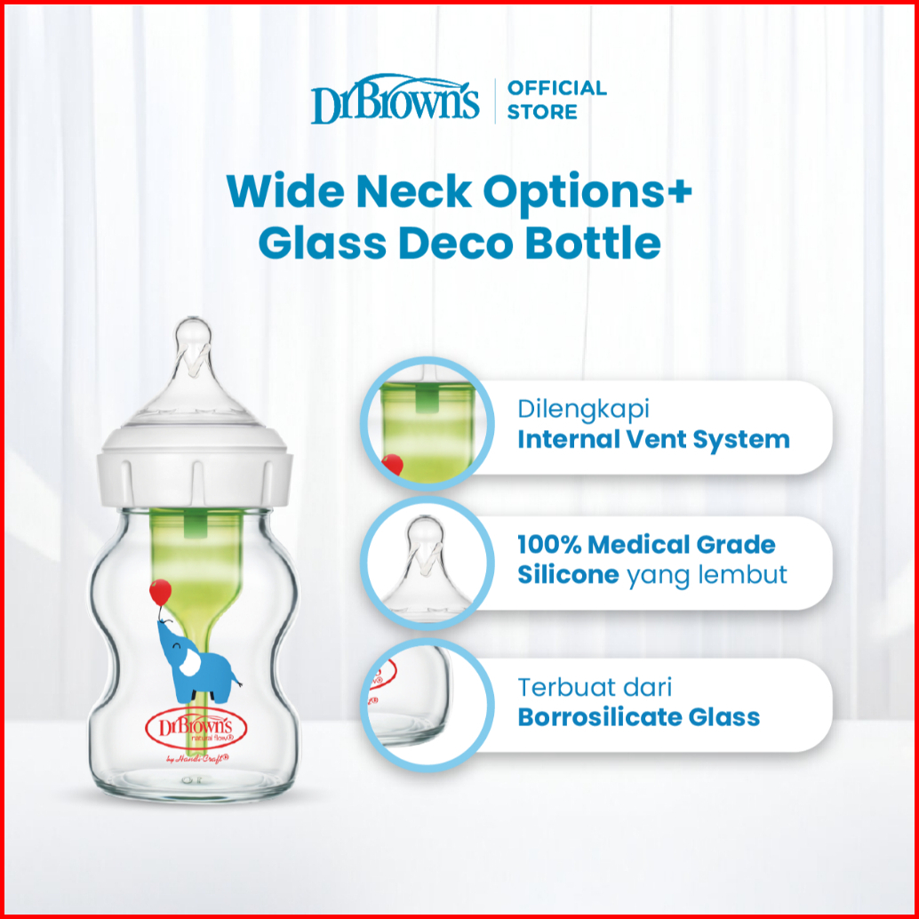 Dr. Brown S 2oz 5oz Glass Wide-neck Options Deco Bottle Botol Susu Kaca Botol Susu Bayi