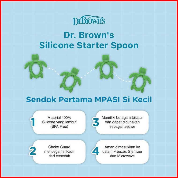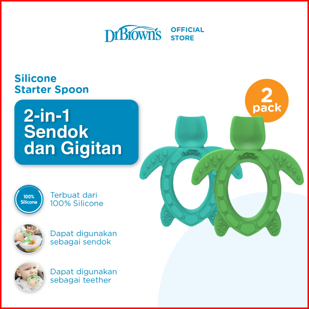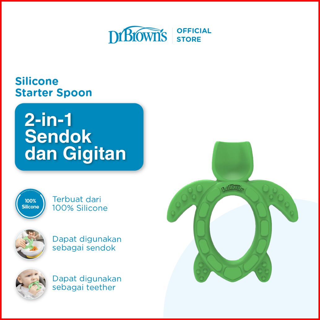 Dr. Brown S Silicone Starter Spoon Teether Turtle Sendok Makan Bayi Teether Gigitan Bayi