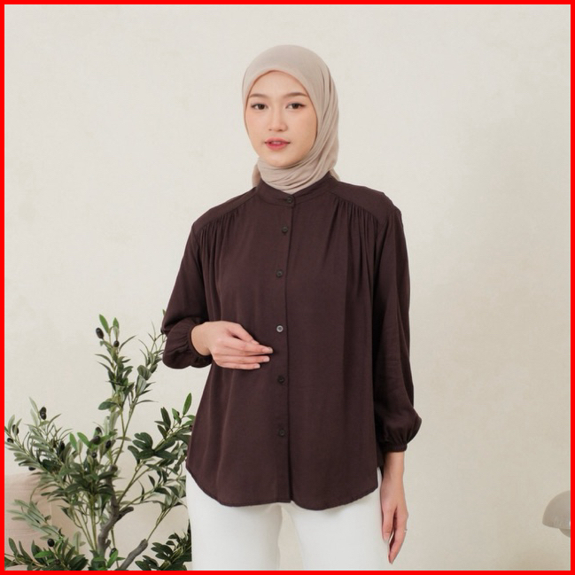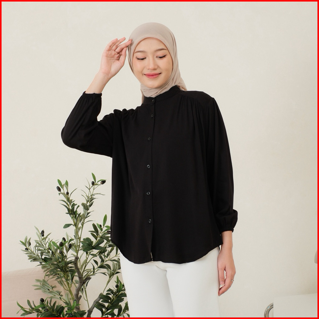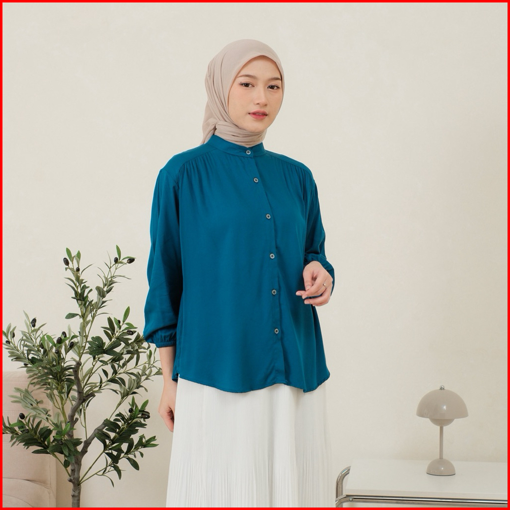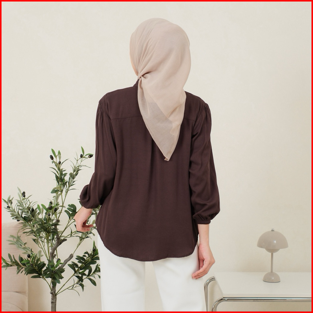 Amena Blouse Rayon Twill Atasan Kemeja Wanita Rayon Twill Lengan Karet