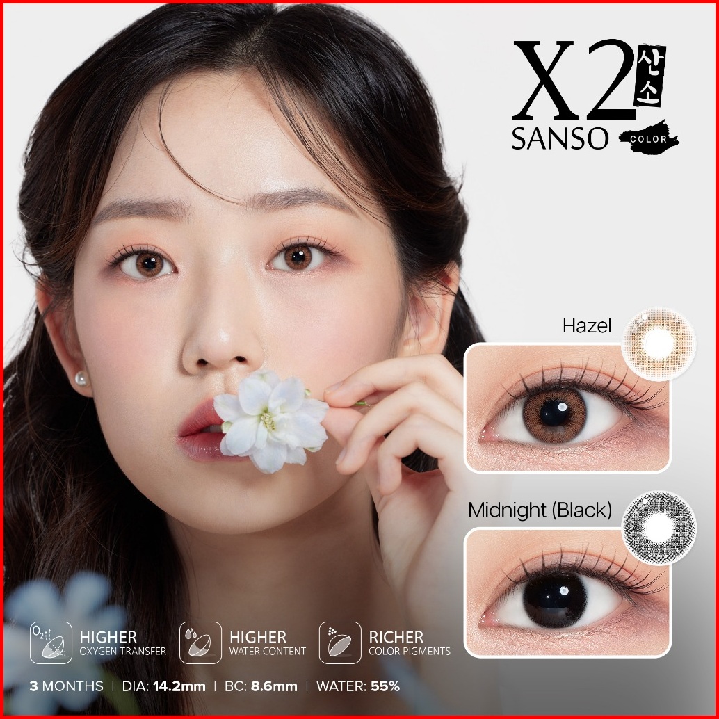 X2 Softlens - X2 Sanso Series Hazel Midnight Black Soflens Korea Soflens X2 Minus