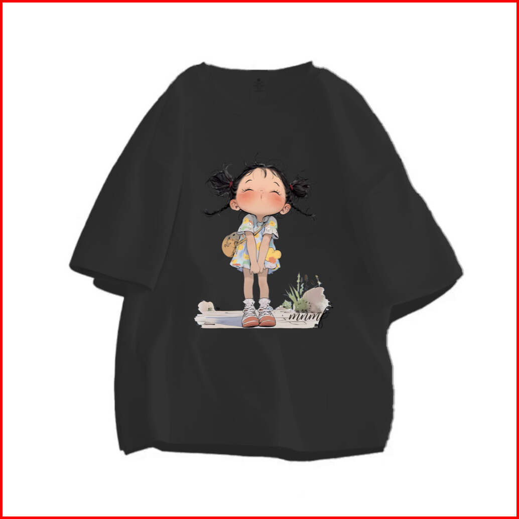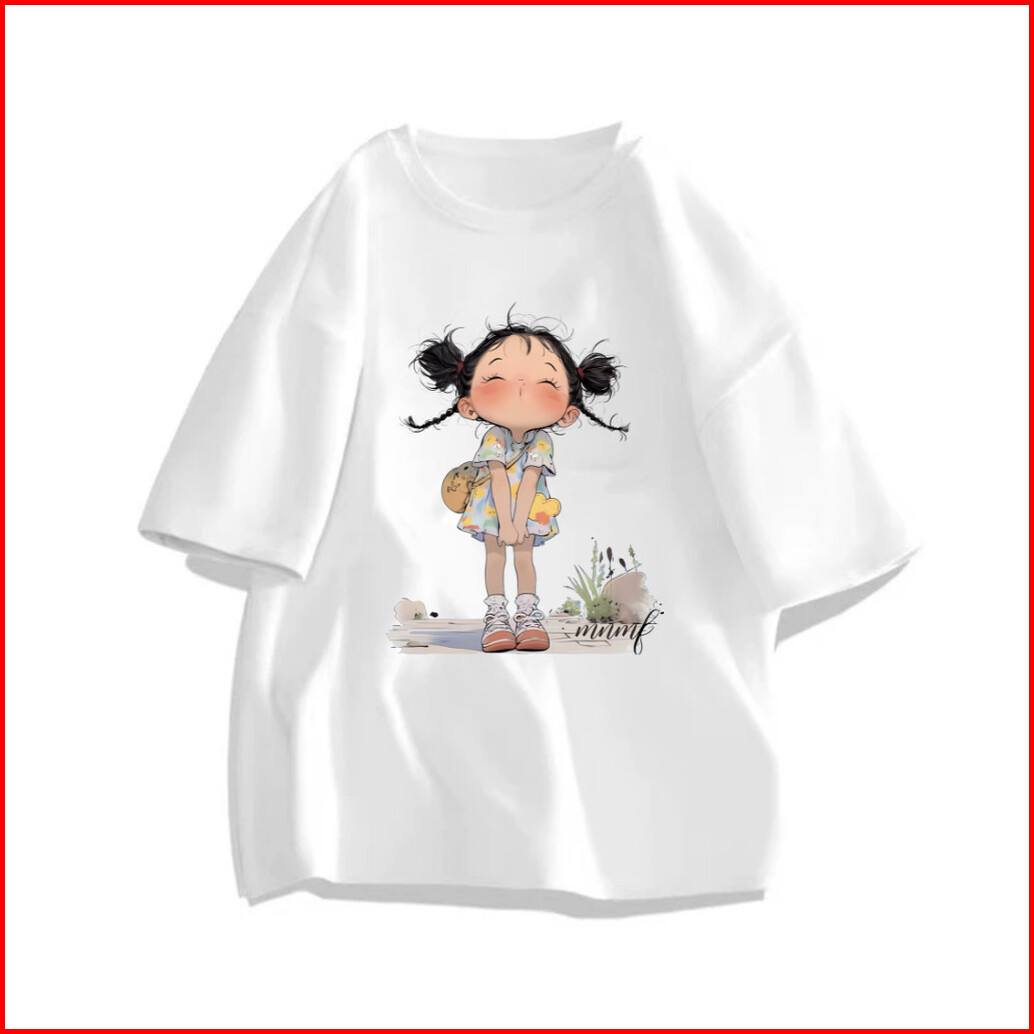 Lucky88k Tshirt Atasan Wanita Kekinian Retro Little Girl Cartoon Oversize Lucu Nyaman Stylish Bahan 100 Cotton