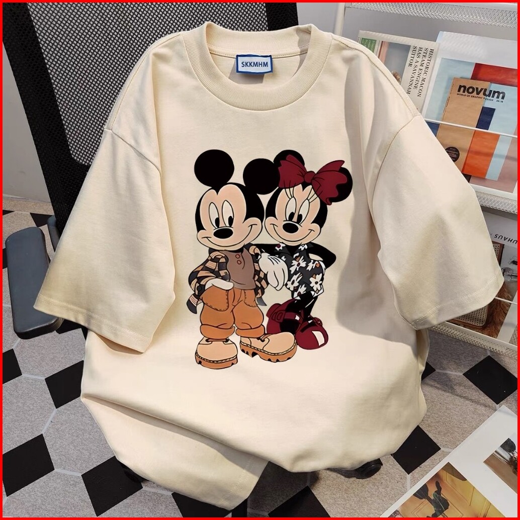 Lucky88k Tshirt Kaos Oversize Lengan Pendek Mickey Minnie Mouse Bahan 100 Cotton
