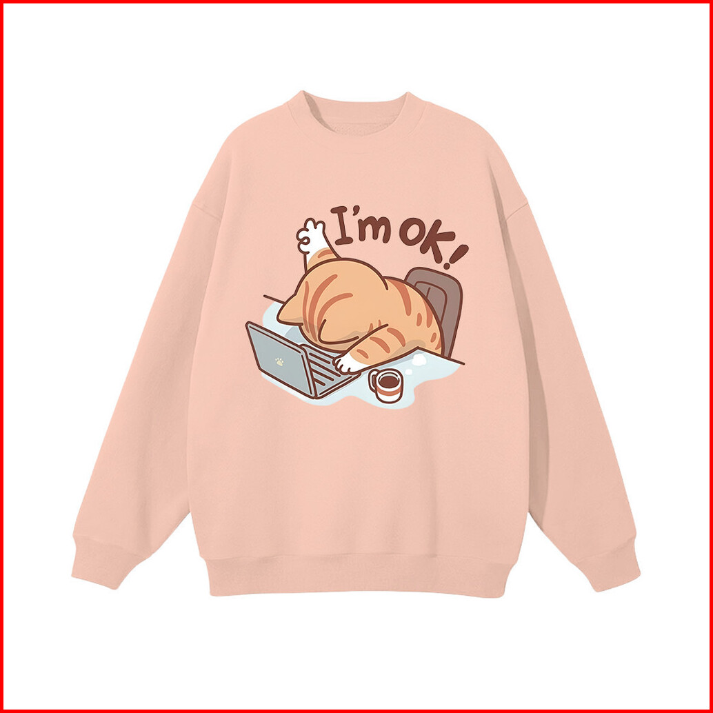 Lucky88k Sweater Oversized Street Style Korean Style Gambar Cat I M Ok Bahan Cotton