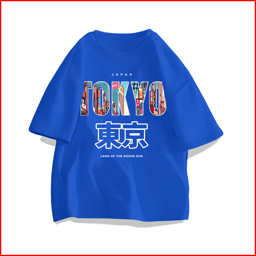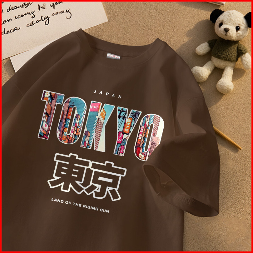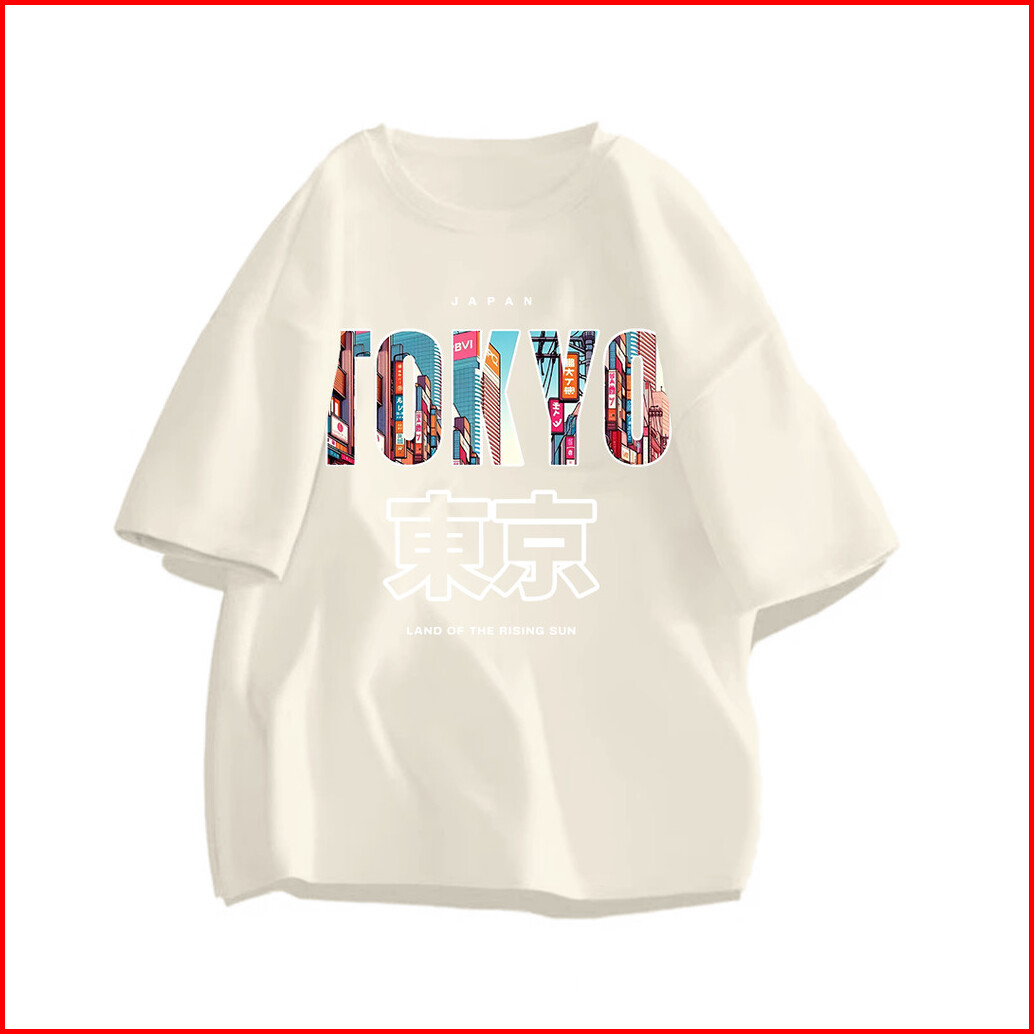 Lucky88k Atasan Lengan Pendek Oversize Pria Wanita Pola Tulisan Tokyo Bahan 100 Cotton