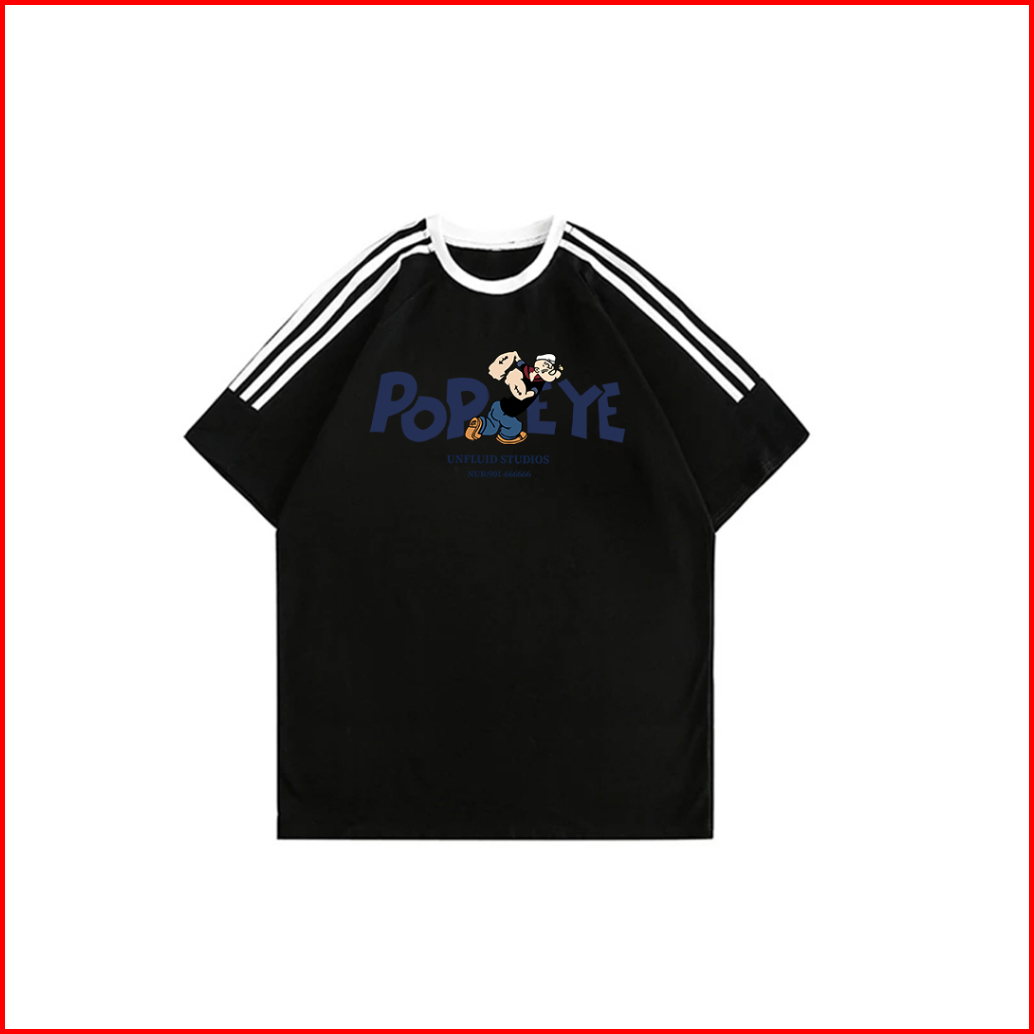 Tshirt Kaos Lengan Pendek Garis Tiga Oversize Gambar Popeye Tebal Dan Nyaman 100 Cotton