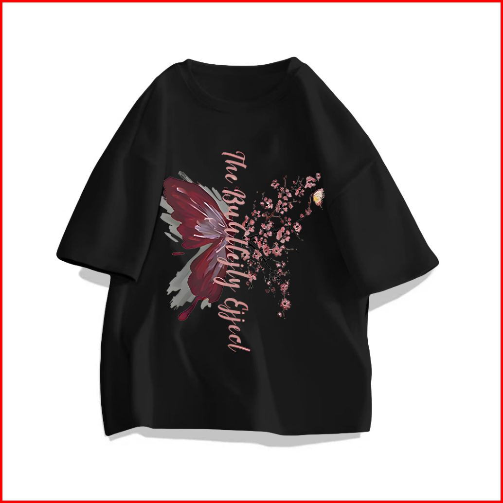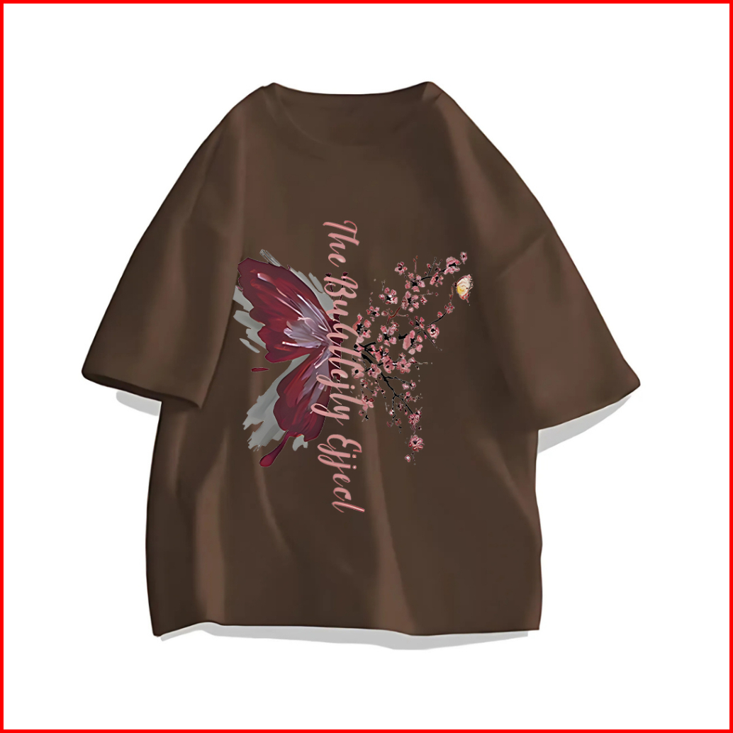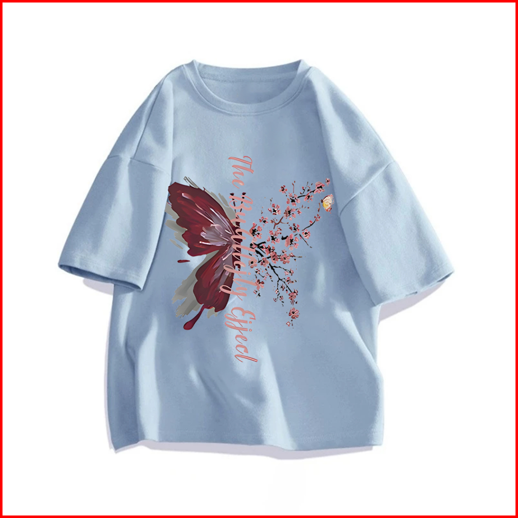 Lucky88k Kaos T-shirt Lengan Pendek Oversize Wanita Cetakan Huruf Kupu-kupu Bunga Bahan Adem 100 Cotton Baju Santai Cewe