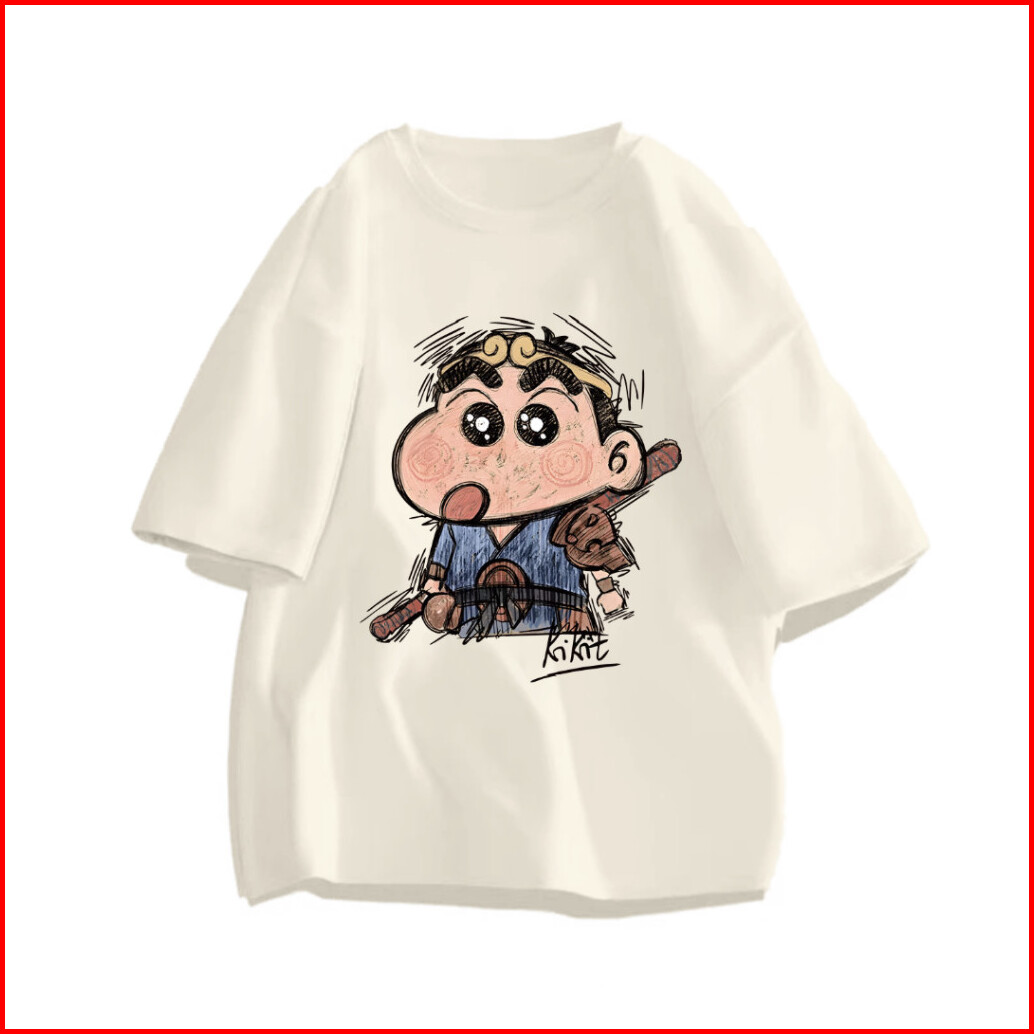 Tshirt Kaos Lengan Pendek Oversize Krayon Shin-chan Chibi Samurai Tebal Dan Nyaman 100 Cotton