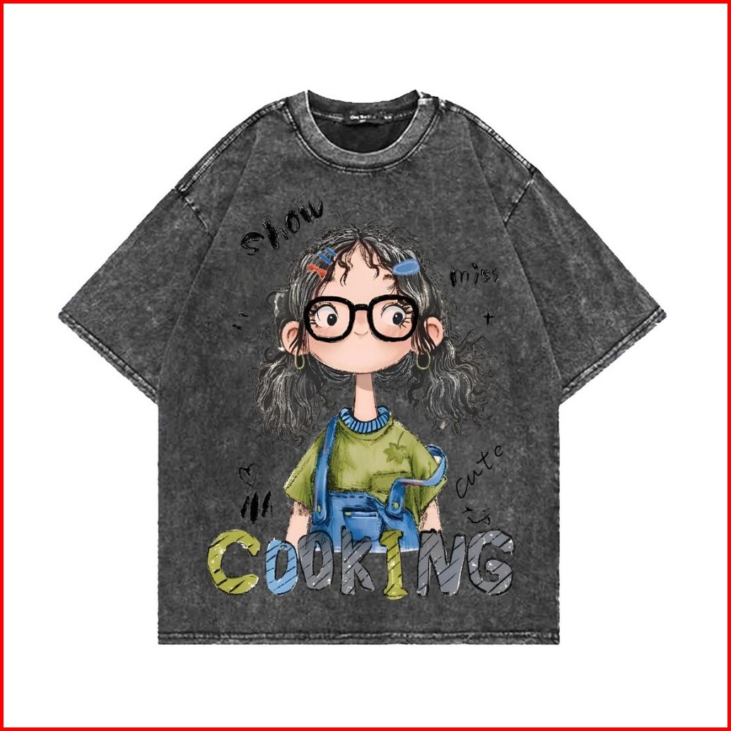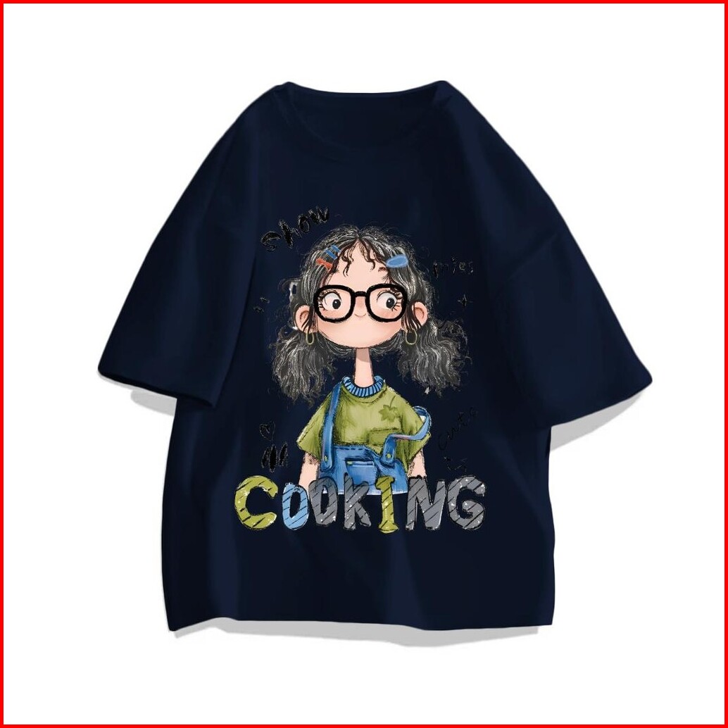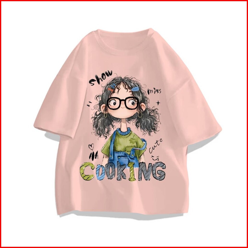 Lucky88k Tshirt Kaos Lengan Pendek Oversize Wanita Korean Style Gambar Cewek Cooking Bahan Cotton