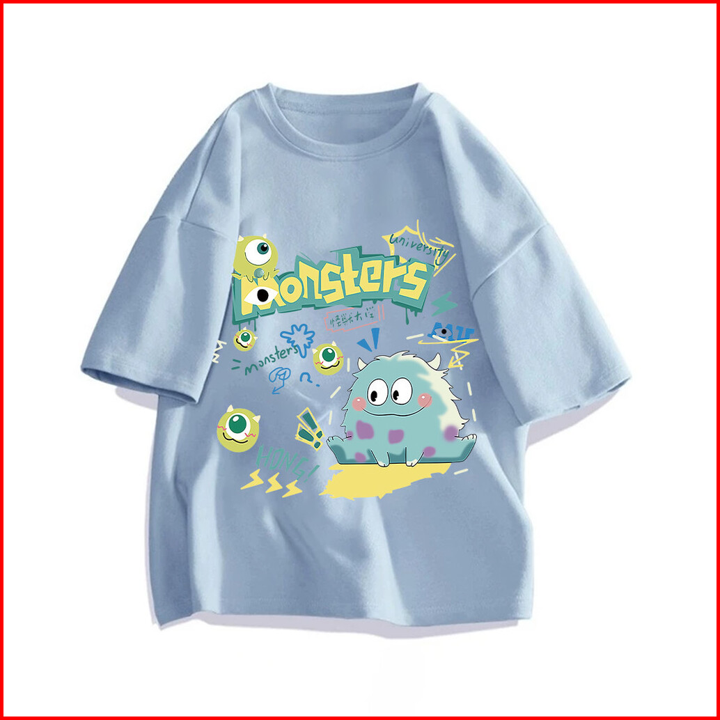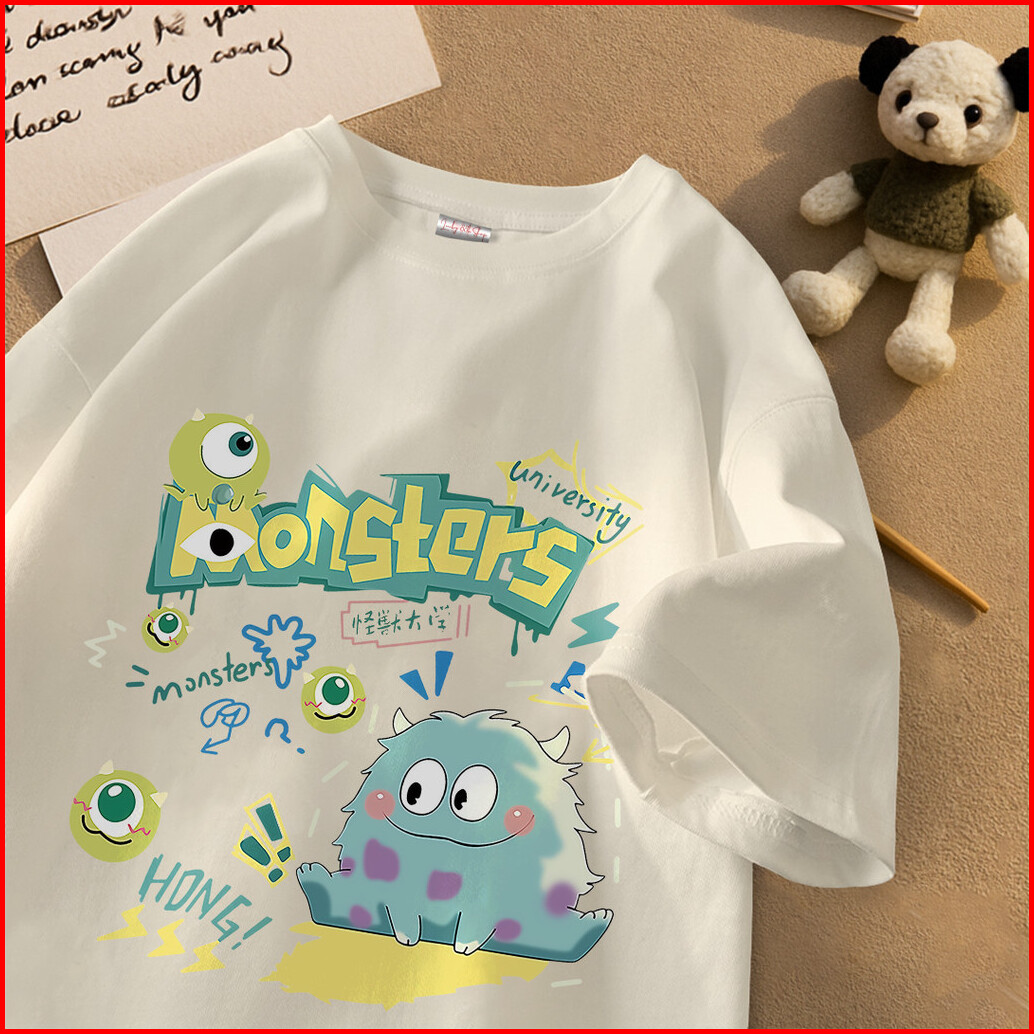 Lucky88k Tshirt Kaos Lengan Pendek Oversize Wanita Korean Style Monster University Bahan 100 Cotton