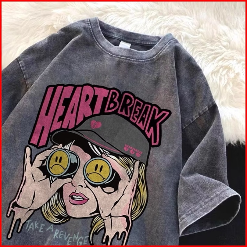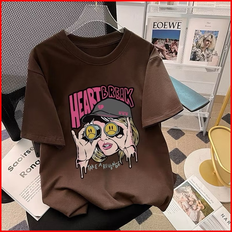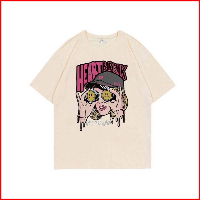 Lucky88k Tshirt Lengan Pendek Heartbreak Baju Kaos Oversize Korean Style Bahan 100 Cotton