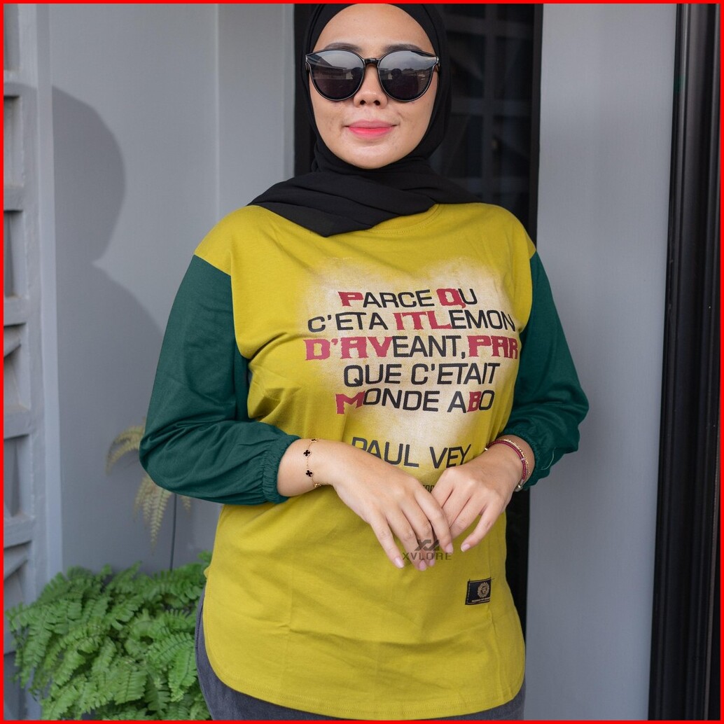 Xvlore Terbaru Baju Kaos Atasan Wanita Kekinian Model Bawahan Oval Lengan Kerut Katun 20s