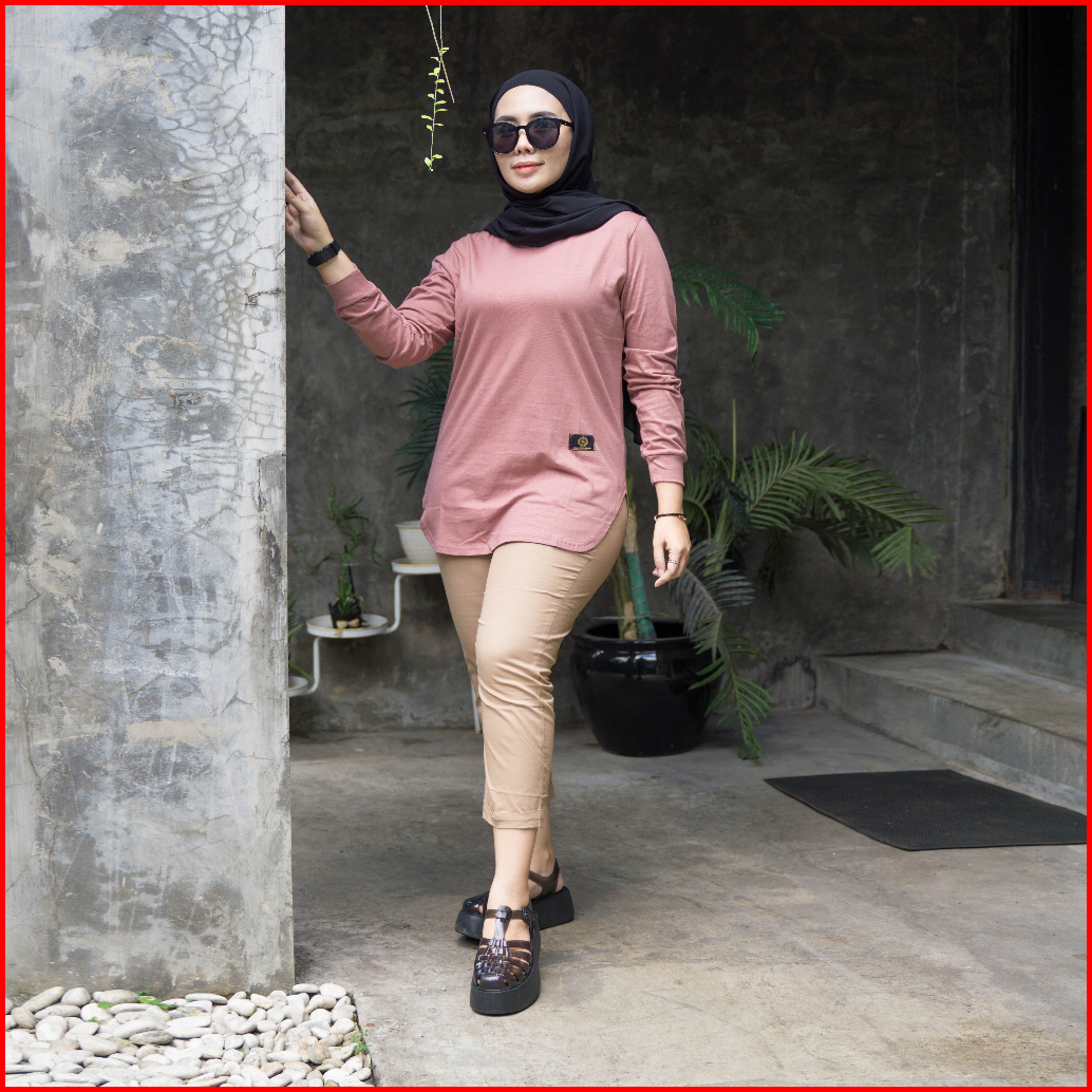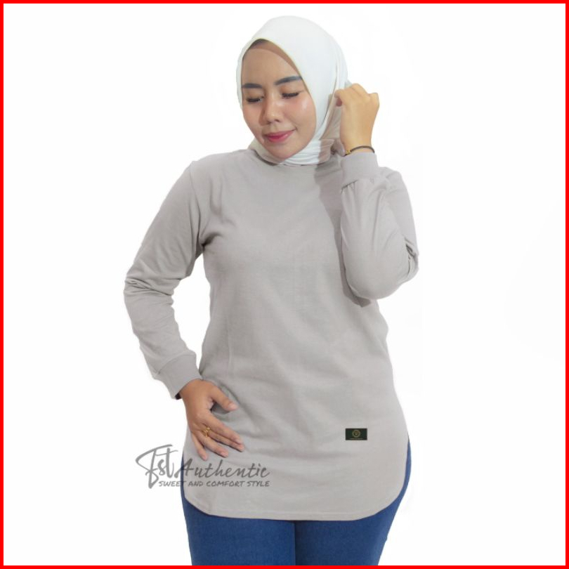 Xvlore Fst Kaos Cewek Wanita Atasan Lengan Panjang Bawahan Oval Polos Real Pict Nyaman Katun Combed Premium A.1
