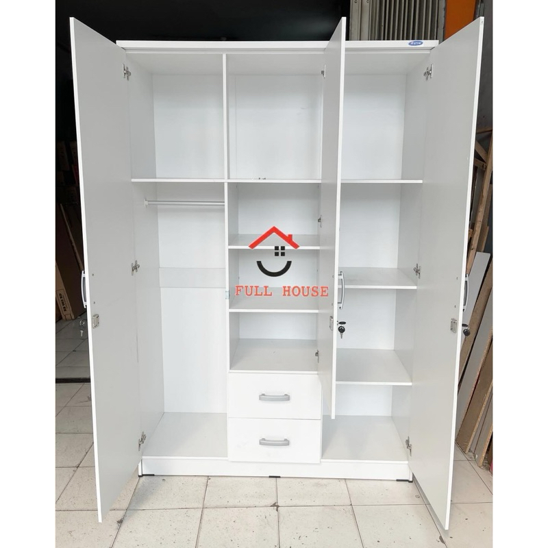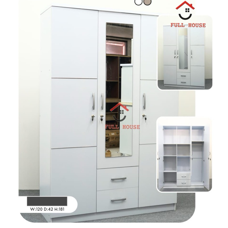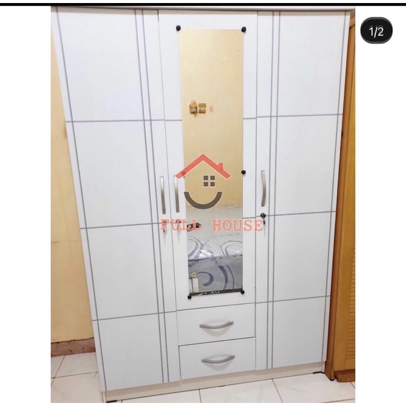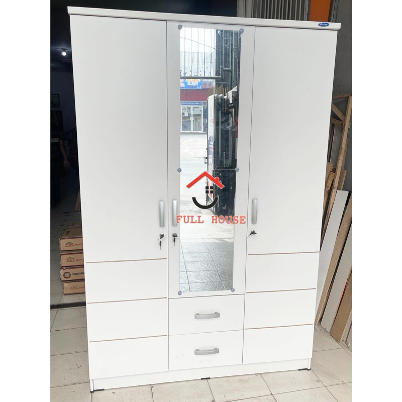 (fullhouse furniture) Lemari pakaian lemari baju 3 pintu dengan l dan cermin kaca panjang putih termurah
